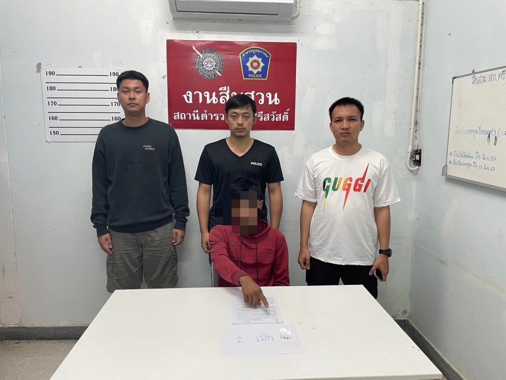 📍สถานที่จับกุม หน้าบ้านเลขที่ 35/4 หมู่ 2 ต.ท่ากระดาน อ.ศรีสวัสดิ์ จว.กาญจนบุรี เวลาประมาณ 17.30 น.