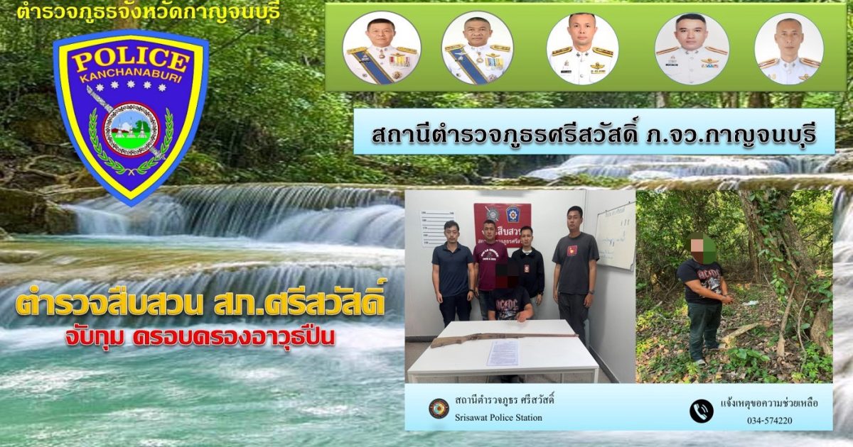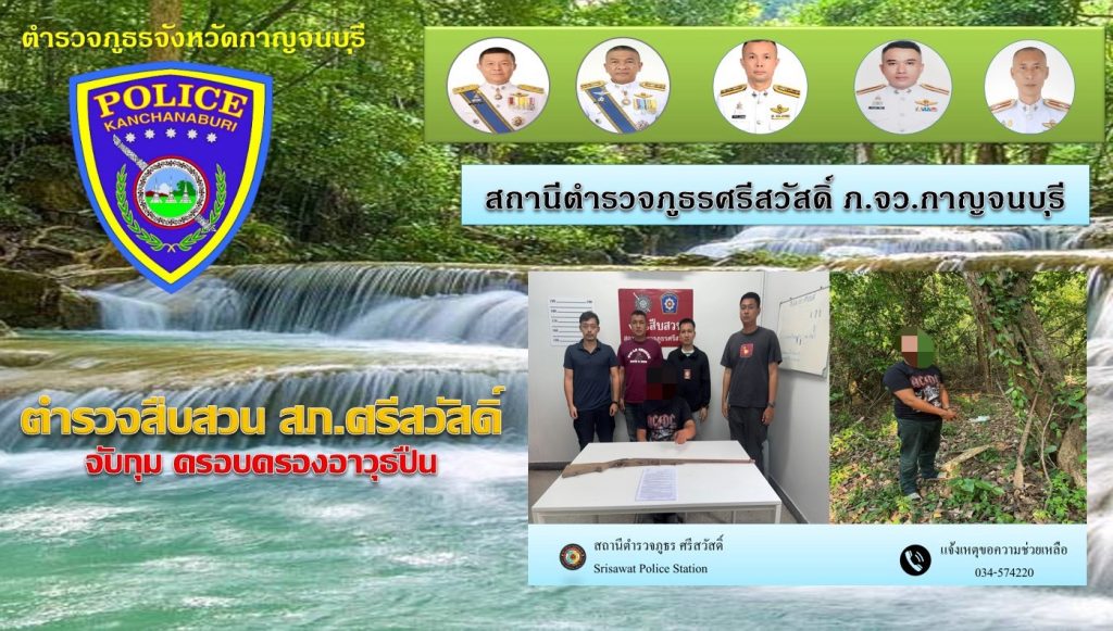 📍สถานที่จับกุม บริเวณป่าข้างบ้านเลขที่ 95/3 ม.1 ต.แม่กระบุง อ.ศรีสวัสดิ์ จ.กาญจนบุรี
