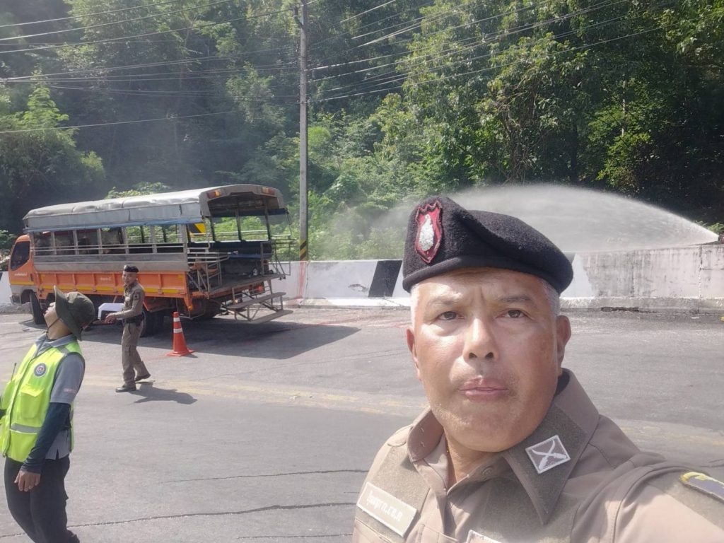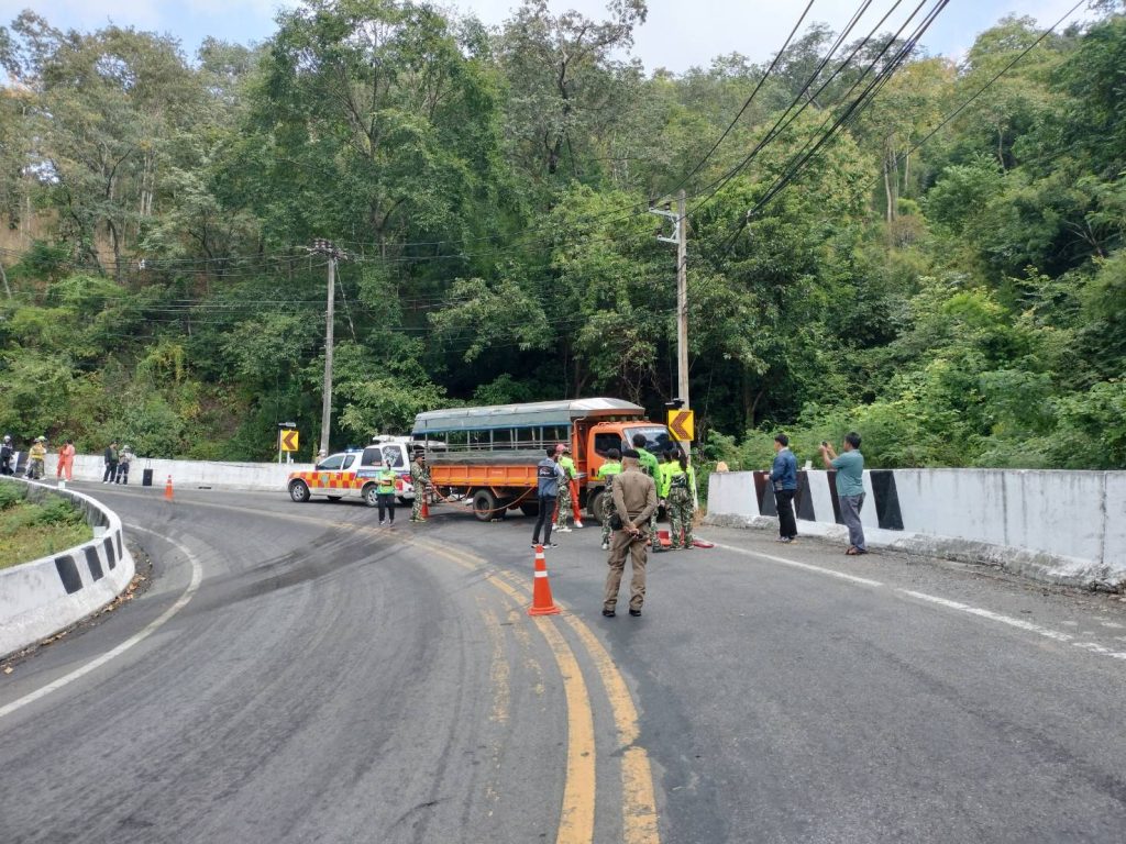 ร่วมกันซ้อมแผนอุบัติเหตุ ณ ถนนทางขึ้นเขาตับเต่า ต.ท่ากระดาน อำเภอศรีสวัสดิ์ จังหวัดกาญจนบุรี