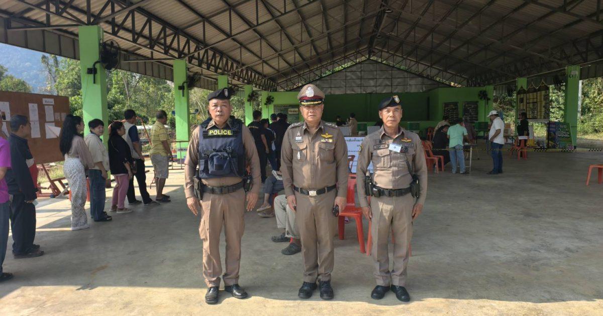 พ.ต.อ.มานพ น้ำประสานไทยผกก.สภ.ศรีสวัสดิ์ ได้มาตรวจความเรียบร้อย หน่วยเลือกตั้งที่ 1 เขตเลือกตั้งที่ 4 ณ ศาลาอเนกประสงค์ หมู่ที่ 4 ต.ท่ากระดาน อ.ศรีสวัสดิ์ จ.กาญจนบุรี