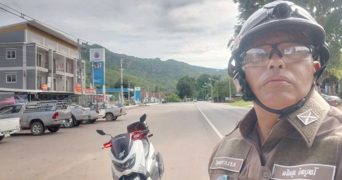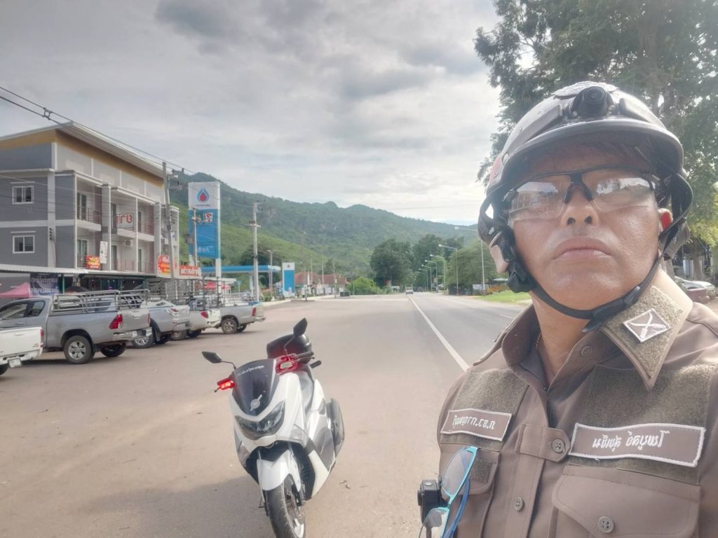 ตำรวจจราจร สภ.ศรีสวัสดิ์ อำนวยความสะดวกจราจร ตรวจสอบการจราจรเส้นทางพื้นที่รับผิดชอบ