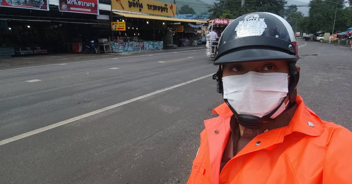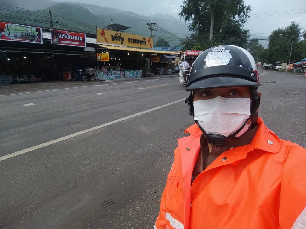 ตำรวจจราจร สภ.ศรีสวัสดิ์ อำนวยความสะดวกจราจร ตรวจสอบการจราจรเส้นทางพื้นที่รับผิดชอบ