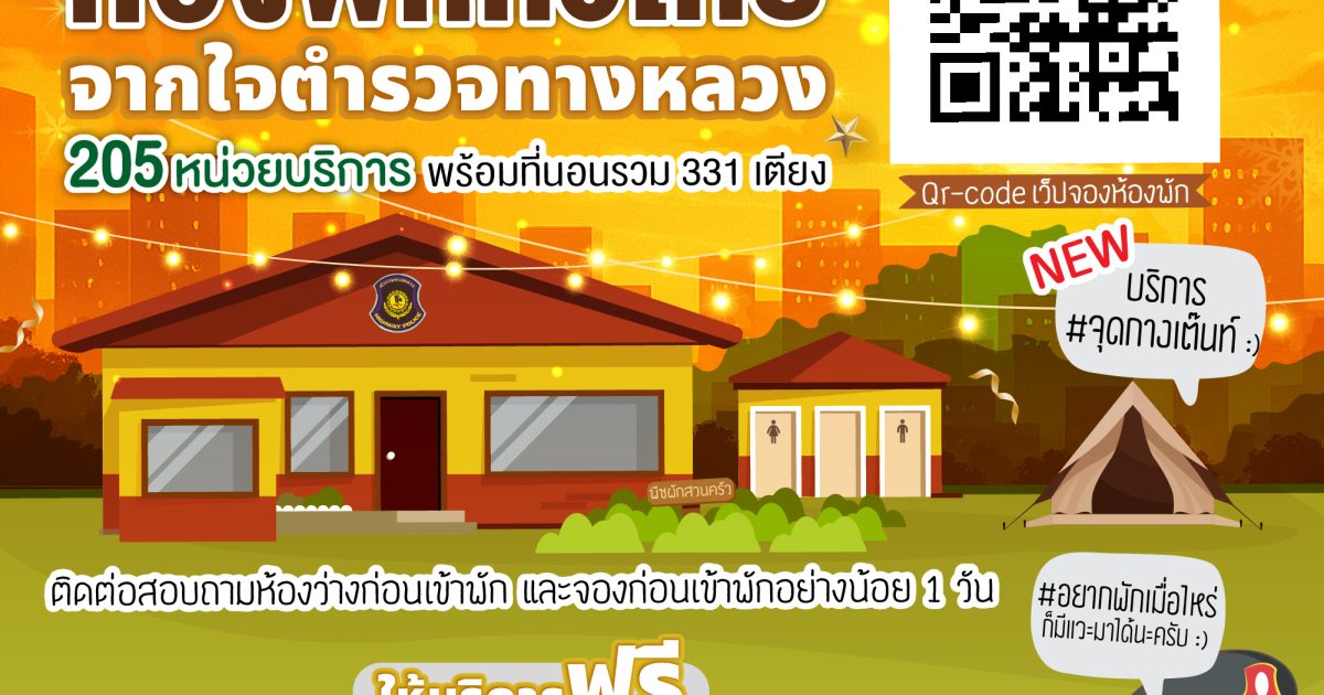 ตำรวจทางหลวง เปิดให้บริการห้องพักฟรีทั่วประเทศ เพื่อรองรับการเดินทางของประชาชนในช่วงเทศกาลปีใหม่ 2569 ช่วยให้ผู้ใช้รถใช้ถนนได้พักผ่อนก่อนเดินทางต่ออย่างปลอดภัย
