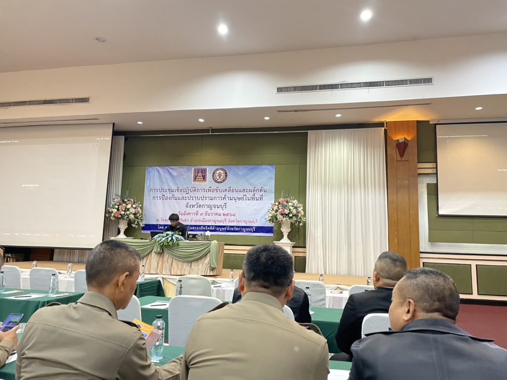 ประชุมเชิงปฏิบัติการเพื่อขับเคลื่อนและพลักดันการป้องกันและปราบปรามการค้ามนุษย์ในพื้นที่จังหวัดกาญจนบุรี ณ โรงแรมริเวอร์แคว ( 9 ธันวาคม 2568 ) เวลา 09.00 น.