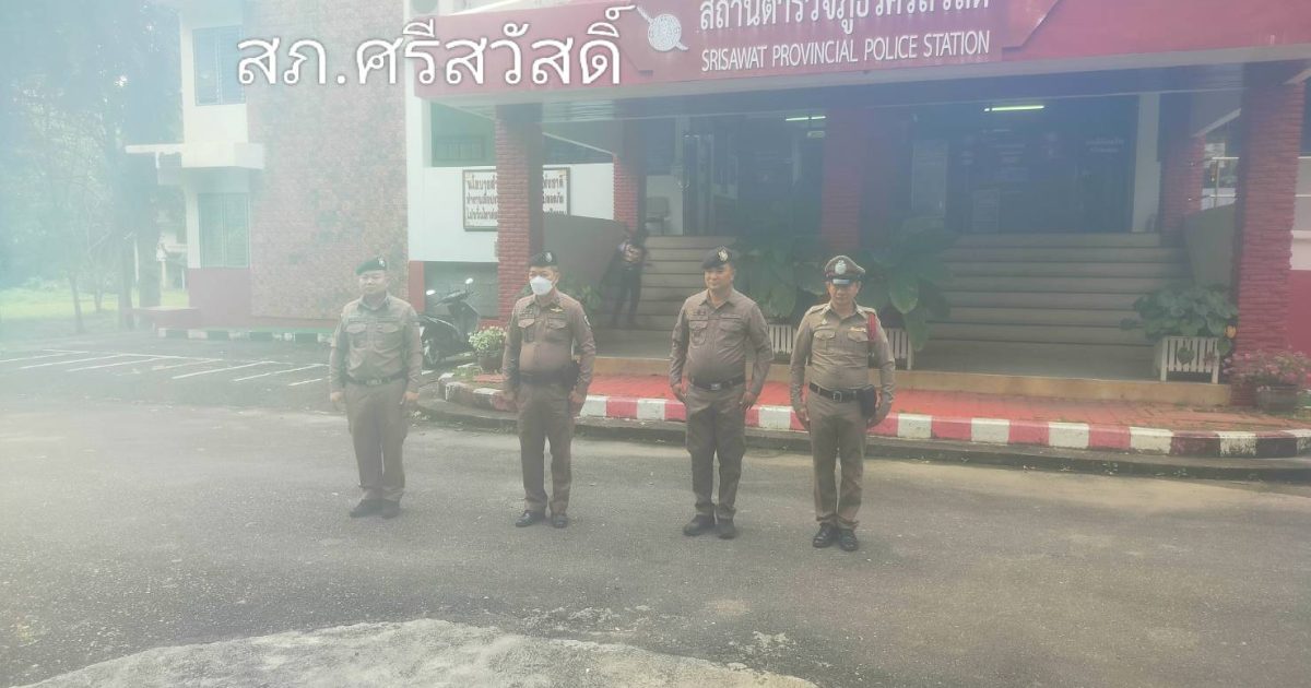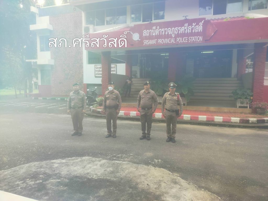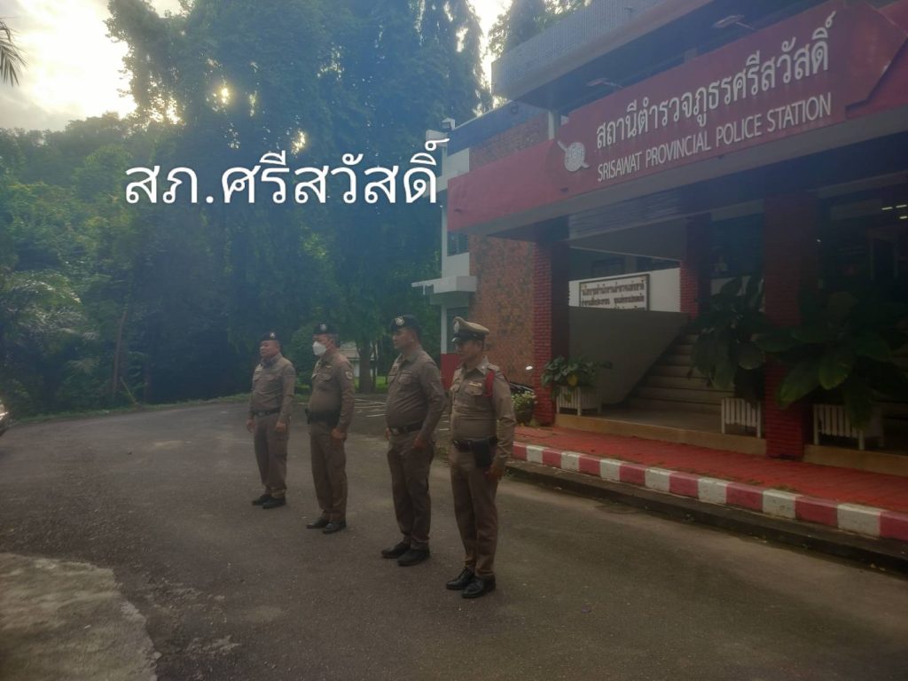 เวลา 08.00 น. พ.ต.ท.มนัส พร้อมศักดิ์โสภณ รอง ผกก.ป.สภ.ศรีสวัสดิ์,พ.ต.ต.สุที มูลทรงเกียรติ์ สวป.สภ.ศรีสวัสดิ์,ร.ต.อ.ศักดิ์ชัย ลู่เลิศกิจ รอง.สวป.สภ.ศรีสวัสดิ์