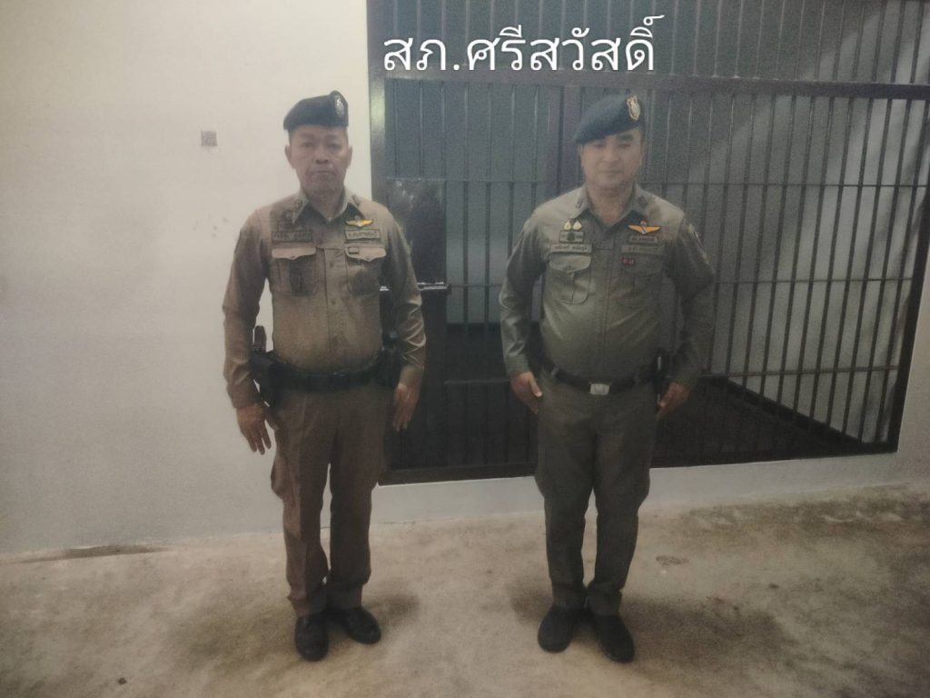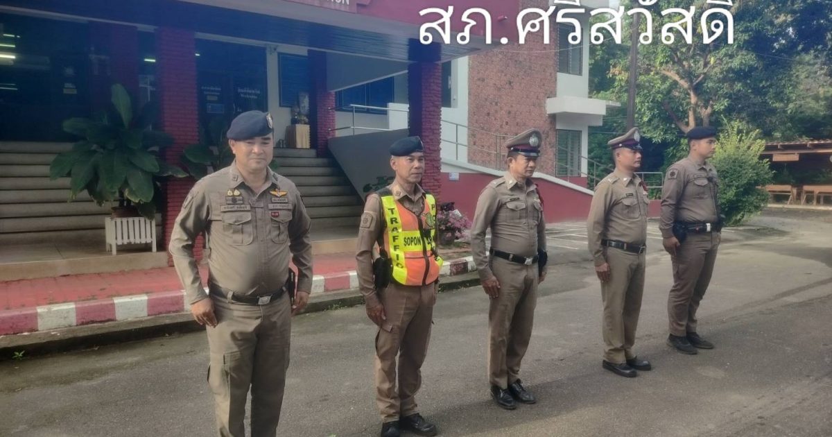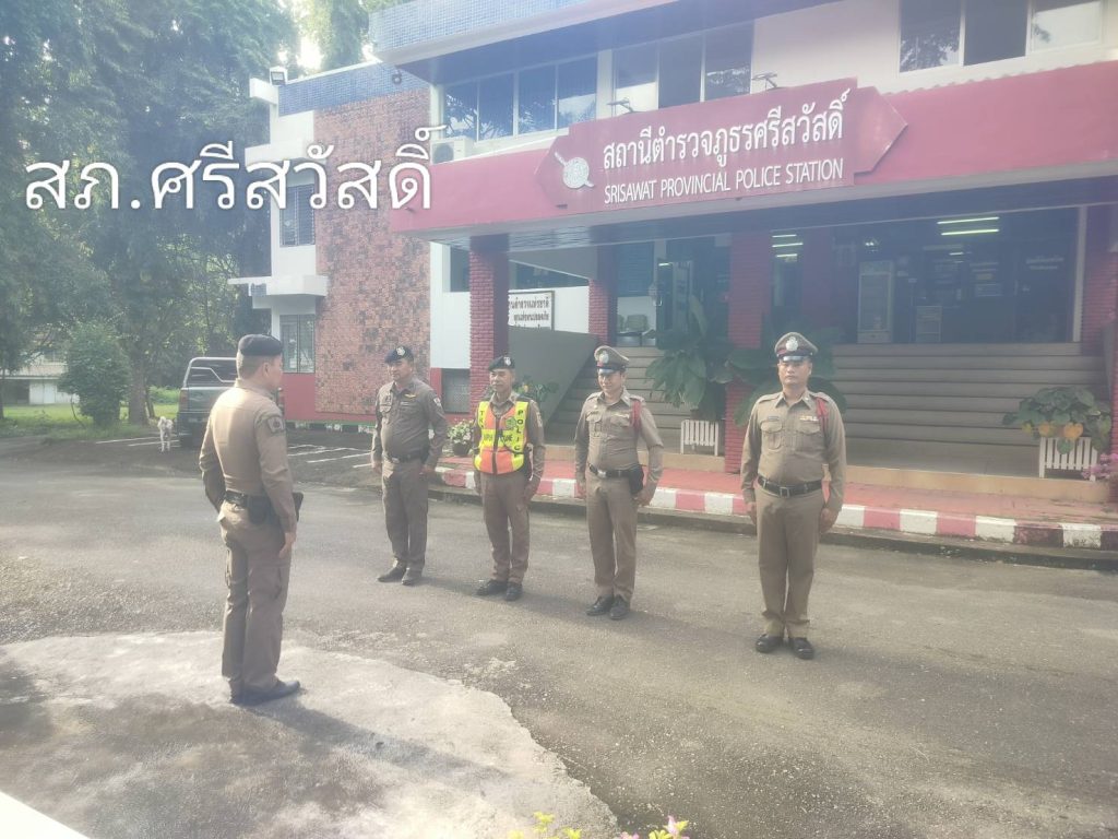 เวลา 08.00 น. พ.ต.ท.มนัส พร้อมศักดิ์โสภณ รอง ผกก.ป.สภ.ศรีสวัสดิ์,พ.ต.ต.สุที มูลทรงเกียรติ์ สวป.สภ.ศรีสวัสดิ์,ร.ต.อ.ศักดิ์ชัย ลู่เลิศกิจ รอง.สวป.สภ.ศรีสวัสดิ์