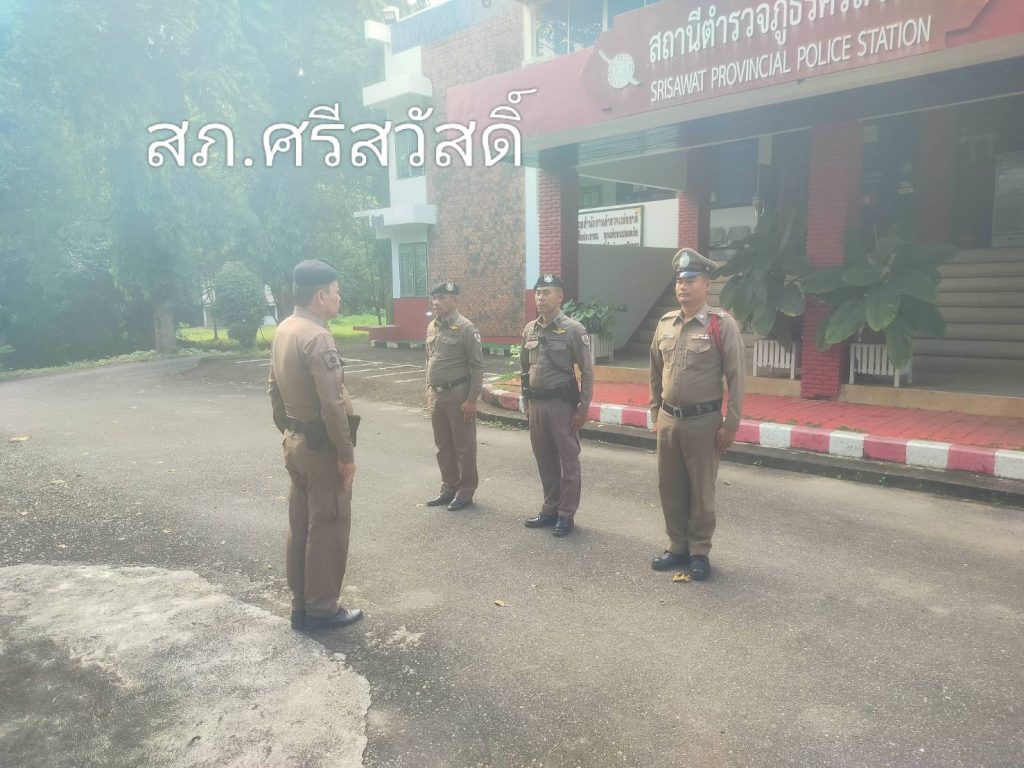 เวลา 08.00 น. พ.ต.ท.มนัส พร้อมศักดิ์โสภณ รอง ผกก.ป.สภ.ศรีสวัสดิ์,พ.ต.ต.สุที มูลทรงเกียรติ์ สวป.สภ.ศรีสวัสดิ์,ร.ต.อ.ศักดิ์ชัย ลู่เลิศกิจ รอง.สวป.สภ.ศรีสวัสดิ์