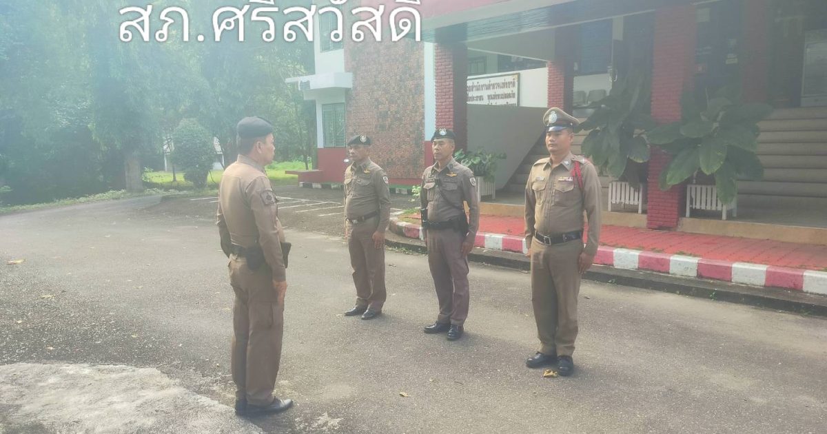 เวลา 08.00 น. พ.ต.ท.มนัส พร้อมศักดิ์โสภณ รอง ผกก.ป.สภ.ศรีสวัสดิ์,พ.ต.ต.สุที มูลทรงเกียรติ์ สวป.สภ.ศรีสวัสดิ์,ร.ต.อ.ศักดิ์ชัย ลู่เลิศกิจ รอง.สวป.สภ.ศรีสวัสดิ์