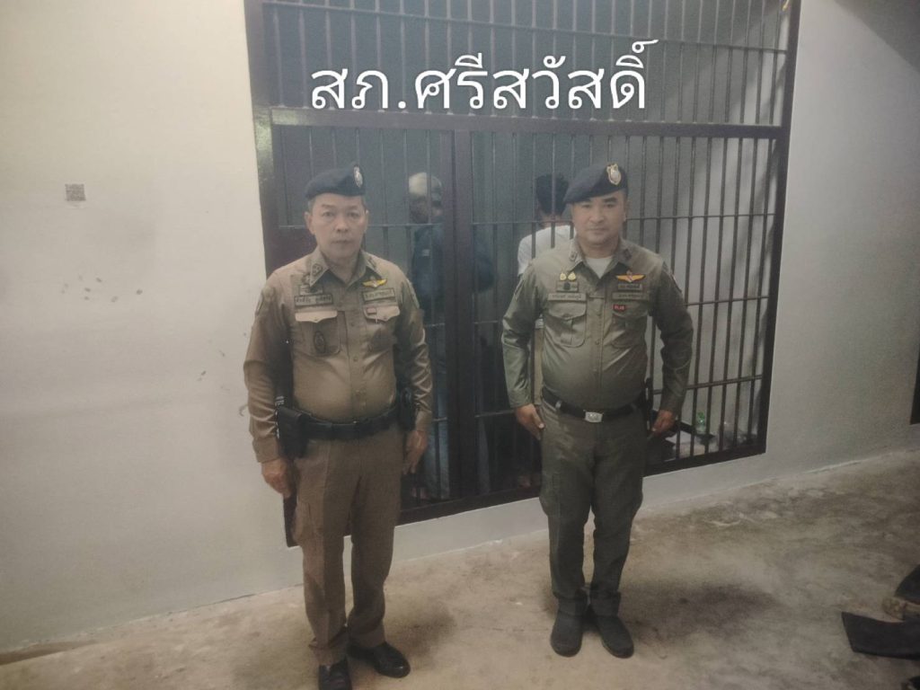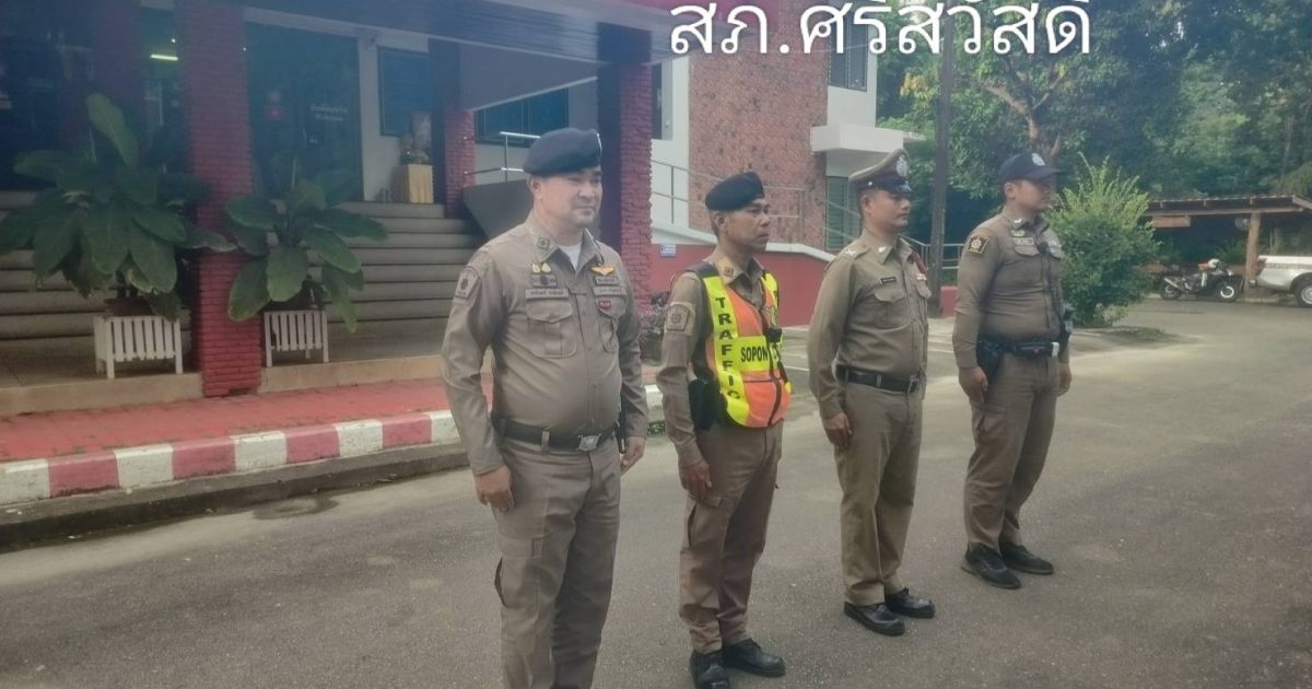 เวลา 08.00 น. พ.ต.ท.มนัส พร้อมศักดิ์โสภณ รอง ผกก.ป.สภ.ศรีสวัสดิ์,พ.ต.ต.สุที มูลทรงเกียรติ์ สวป.สภ.ศรีสวัสดิ์,ร.ต.อ.ศักดิ์ชัย ลู่เลิศกิจ รอง.สวป.สภ.ศรีสวัสดิ์