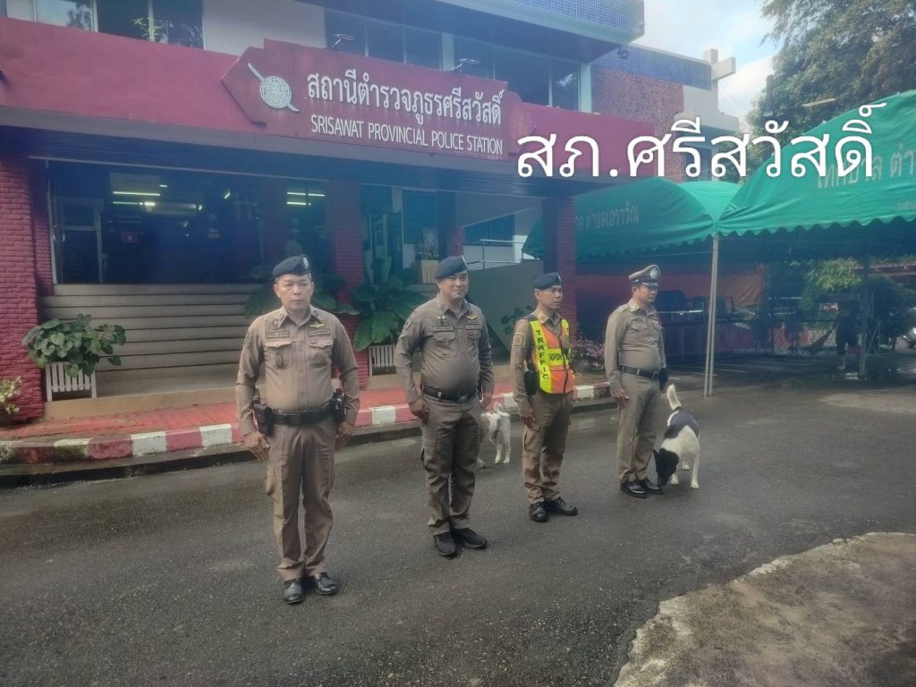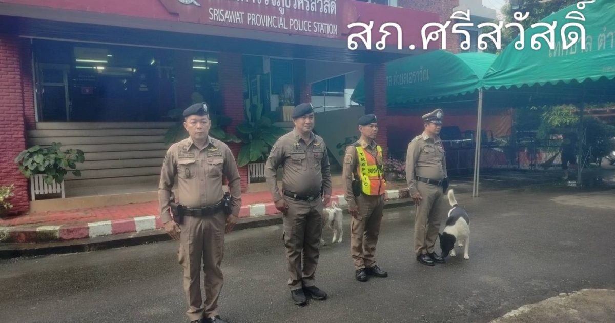 เวลา 08.00 น. พ.ต.ท.มนัส พร้อมศักดิ์โสภณ รอง ผกก.ป.สภ.ศรีสวัสดิ์,พ.ต.ต.สุที มูลทรงเกียรติ์ สวป.สภ.ศรีสวัสดิ์,ร.ต.อ.ศักดิ์ชัย ลู่เลิศกิจ รอง.สวป.สภ.ศรีสวัสดิ์