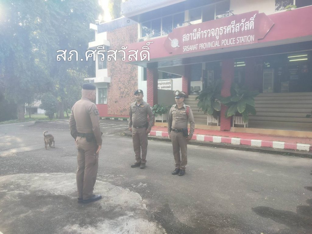 เวลา 08.00 น. พ.ต.ท.มนัส พร้อมศักดิ์โสภณ รอง ผกก.ป.สภ.ศรีสวัสดิ์,พ.ต.ต.สุที มูลทรงเกียรติ์ สวป.สภ.ศรีสวัสดิ์,ร.ต.อ.ศักดิ์ชัย ลู่เลิศกิจ รอง.สวป.สภ.ศรีสวัสดิ์