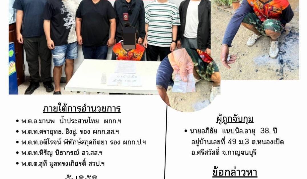 📍สถานที่จับกุม บ้านพักไม่มีเลขที่ หมู่ ๒ ต.ท่ากระดาน อ.ศรีสวัสดิ์ จว.กาญจนบุรี เวลาประมาณ ๑๓.๒๐ น.