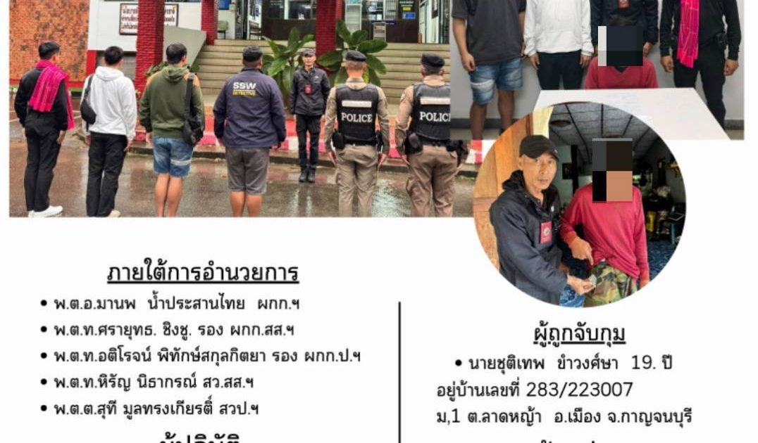 📍สถานที่จับกุม บ้านเลขที่ ๒๔๐ หมู่ ๒ ต.ท่ากระดาน อ.ศรีสวัสดิ์ จว.กาญจนบุรี เวลาประมาณ ๑๔.๐๐ น.