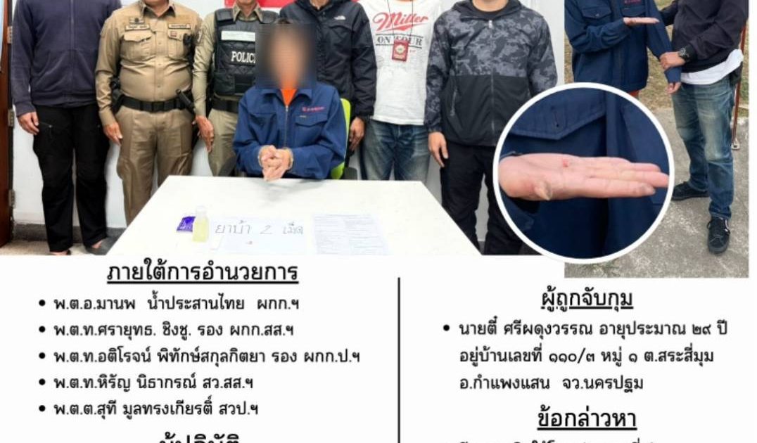 ได้สั่งการให้ พ.ต.ท.หิรัญ นิธากรณ์ สว.สส. และชุดสืบสวน สภ.ศรีสวัสดิ์ จับกุม