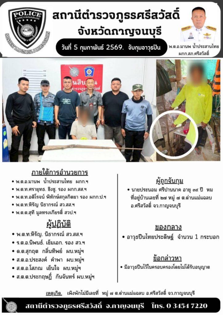📍สถานที่จับกุม เพิงพักไม่มีเลขที่ หมู่ ๗ ต.ด่านแม่แฉลบ อ.ศรีสวัสดิ์ จว.กาญจนบุรี