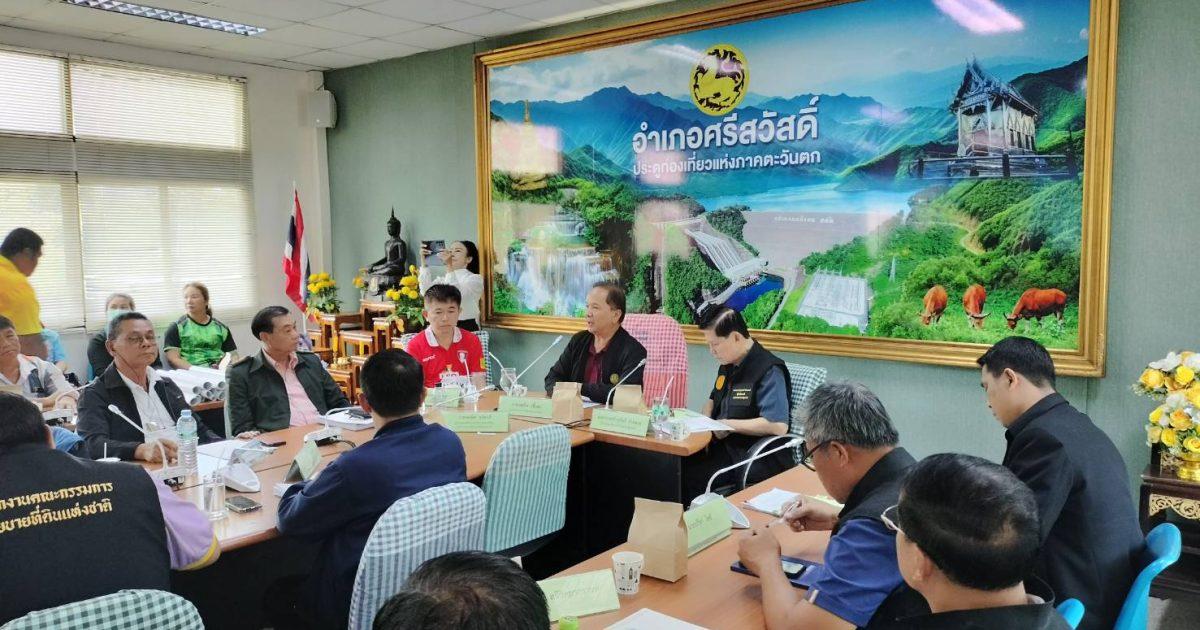 พ.ต.อ.กิตติพันธ์ เสนาอุดร ผกก.สภ.ศรีสวัสดิ์ เป็นผู้แทน ผบก.ภ.จว.กาญจนบุรี พร้อมด้วย พ.ต.ต.สุที มูลทรงเกียรติสวป.สภ.ศรีสวัสดิ์ ร่วมประชุมกับหน่วยงานที่เกี่ยวข้อง เพื่อรวบรวมข้อมูล ข้อเท็จจริง กรณีประชาชนที่อาศัยในพื้นที่อำเภอศรีสวัสดิ์ ได้รับความเดือดร้อนจากการตรวจสอบและพิสูจน์สิทธิในที่ดิน โดยมีนายสมคิด เชื้อคง รองเลขาธิการนายกรัฐมนตรี ฝ่ายการเมือง เป็นประธานการประชุมฯ ณ ที่ว่าการอำเภอศรีสวัสดิ์