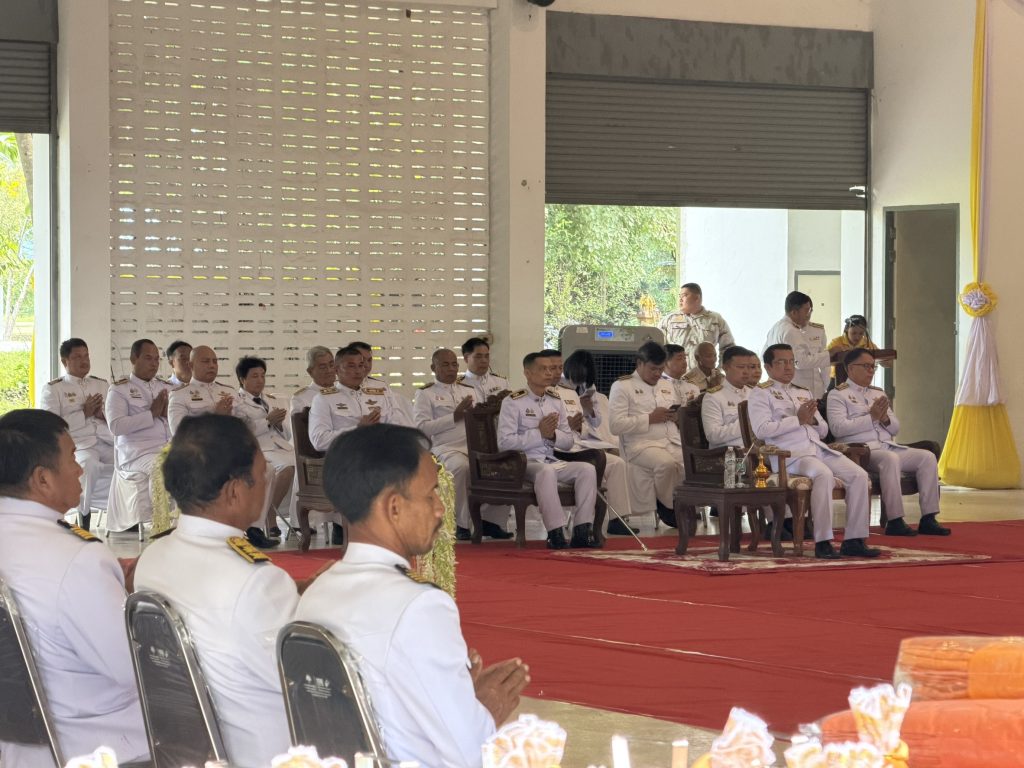 ร่วมพิธีเจริญพระพุทธมนต์ ทําบุญตักบาตรถวายพระราชกุศล วางพวงมาลา เนื่องในวันนวมินทรมหาราช วันที่ 13 ตุลาคม 2568 ณ หอประชุมอำเภอศรีสวัสดิ์