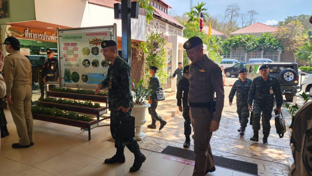 วันที่20 ก.พ.67 เวลา 12.00 น. พล.ต.ต.นครินทร์ สุคนธวิท ผบก.ภ.จว.กาญจนบุรี พร้อมด้วย พ.ต.อ.บรรจง.อมฤทธิ์ รอง ผบก.ภ.จว.กาญจนบุรี และ พ.ต.อ.กิตติพันธ์ เสนาอุดร ผกก.สภ.ศรีสวัสดิ์ ร่วมรับ พล.ท.ชิษณุพงศ์ รอดศิริ มทภ.1/ ผอ.รมน.ภาค 1 เดินทางมารับทราบสถานการณ์ไฟป่าและมลพิษทางอากาศในพื้นที่จังหวัดกาญจนบุรี ณ ห้องประชุมมุกดา 1 (เรือนธารา) เขื่อนศรีนคินทร์ อ.ศรีสวัสดิ์ จว.กาญจนบุรี