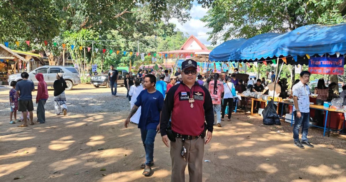 ร.ต.อ.อมรเทพ ทองนุ่ม รอง สวป.ฯ สายตรวจ ต.แม่กระบุง ดูแลความสงบเรียบร้อย งานรับกฐิน วัดถ้ำเนรมิตร ม.6 บ้านต้นมะพร้าว..