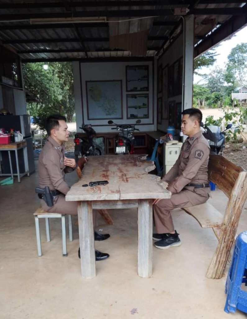 ส.ต.ท.ตันติกร ประดับสุข ผบ.หมู่ป.สภ.ศรีสวัสดิ์ อยู่ปฏิบัติหน้าที่ เหตุการณ์ทั่วไปปกติ