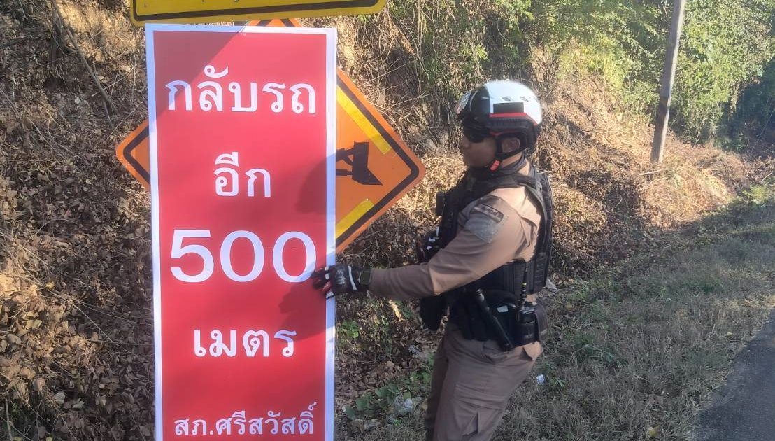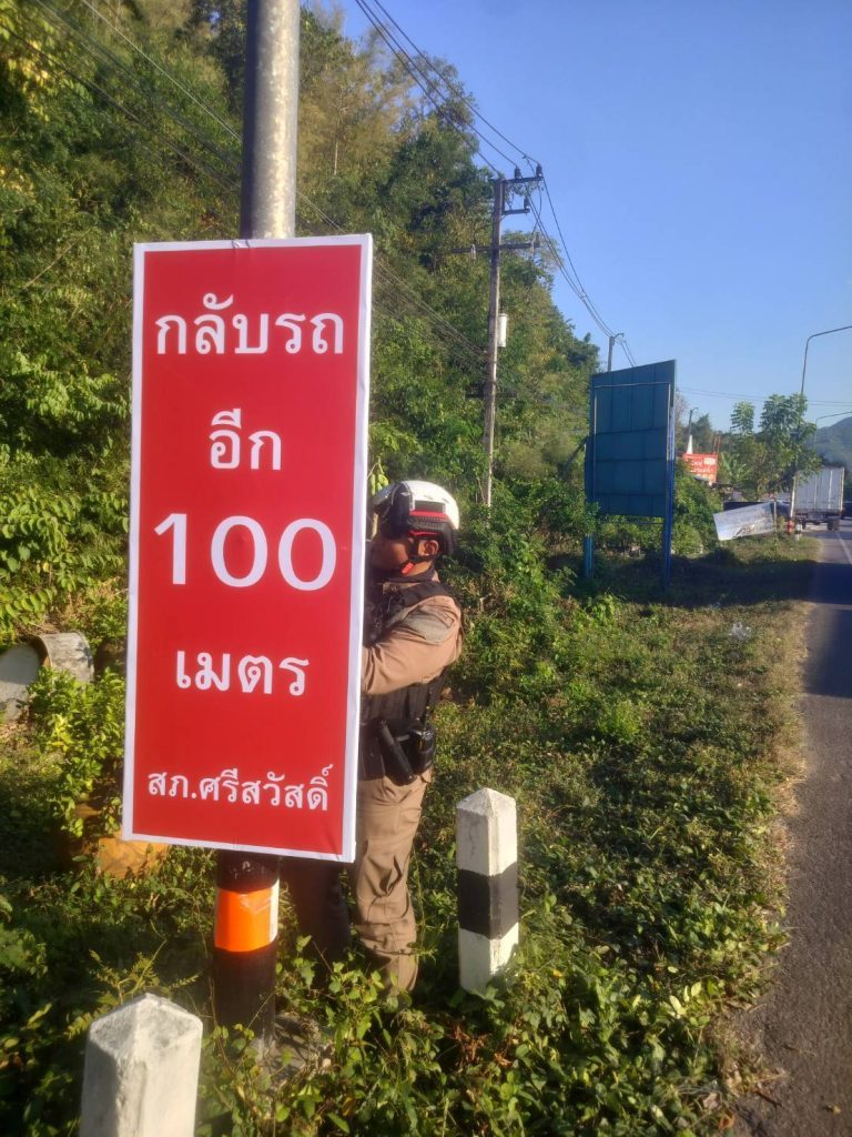 ดำเนินการ: ติดตั้งป้ายไวนิลแจ้งเตือน “จุดกลับรถ” และ “ระยะทาง” เส้นทางเขาตับเต่า ตำบลท่ากระดาน – กาญจนบุรี อย่างชัดเจนตลอดเส้นทาง เพื่อให้ผู้ขับขี่เตรียมตัวล่วงหน้าและลดความเสี่ยงในการเกิดอุบัติเหตุ