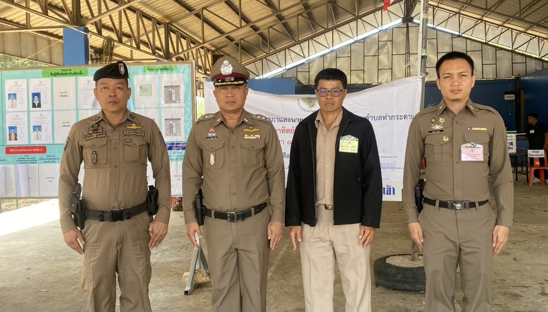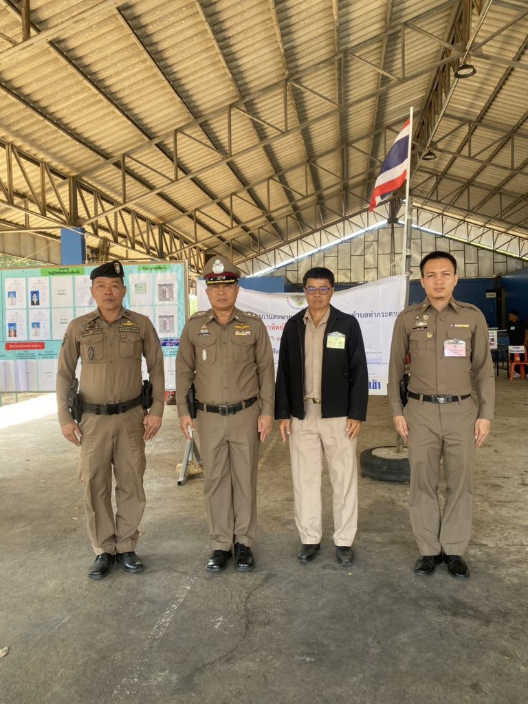 พ.ต.อ.มานพ น้ำประสานไทย ผกก.สภ.ศรีสวัสดิ์ ได้มาตรวจความเรียบร้อย หน่วยเลือกตั้งที่ 1 หมู่ที่ 5 ต.ท่ากระดาน อ.ศรีสวัสดิ์จ.กาญจนบุรี