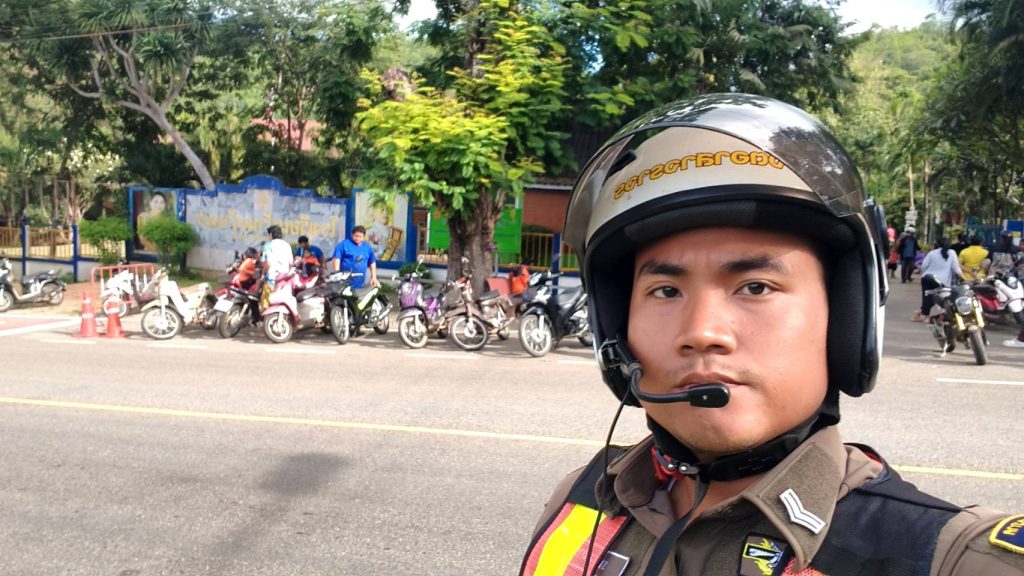 🚔 ส.ต.ต.อนุชา คัณเสน ตำรวจจราจร สภ.ศรีสวัสดิ์ อำนวยความสะดวกจราจร บริเวณหน้าโรงเรียนบ้านเจ้าเณร เพื่อความปลอดภัยของนักเรียน-ผู้ปกครอง