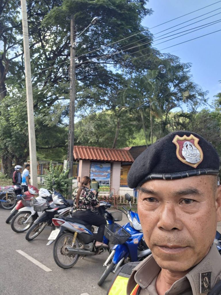 🚔 ร.ต.ท.ไพบูลย์ สวัสดิ์ ตำรวจจราจร สภ.ศรีสวัสดิ์ อำนวยความสะดวกจราจร บริเวณหน้าโรงเรียนบ้านเจ้าเณร เพื่อความปลอดภัยของนักเรียน-ผู้ปกครอง📍 โรงเรียนบ้านเจ้าเณร เป็นหนึ่งในสถานศึกษาที่อยู่ในพื้นที่รับผิดชอบของ สถานีตำรวจภูธรศรีสวัสดิ์ ตำรวจจราจร อำนวยความสะดวกด้านการจราจร เพื่อช่วยให้น้องๆ ปลอดภัย