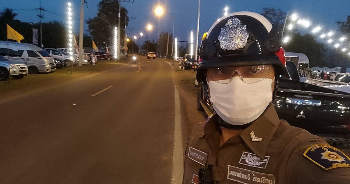 🚔 ส.ต.ต.นครินทร์ อินทร์พรหม ตำรวจจราจร สภ.ศรีสวัสดิ์ อำนวยความสะดวกจราจร บริเวณสถานที่จัดงาน “คนโสดคนเหงา ขึ้นเขาแก่งเรียง”