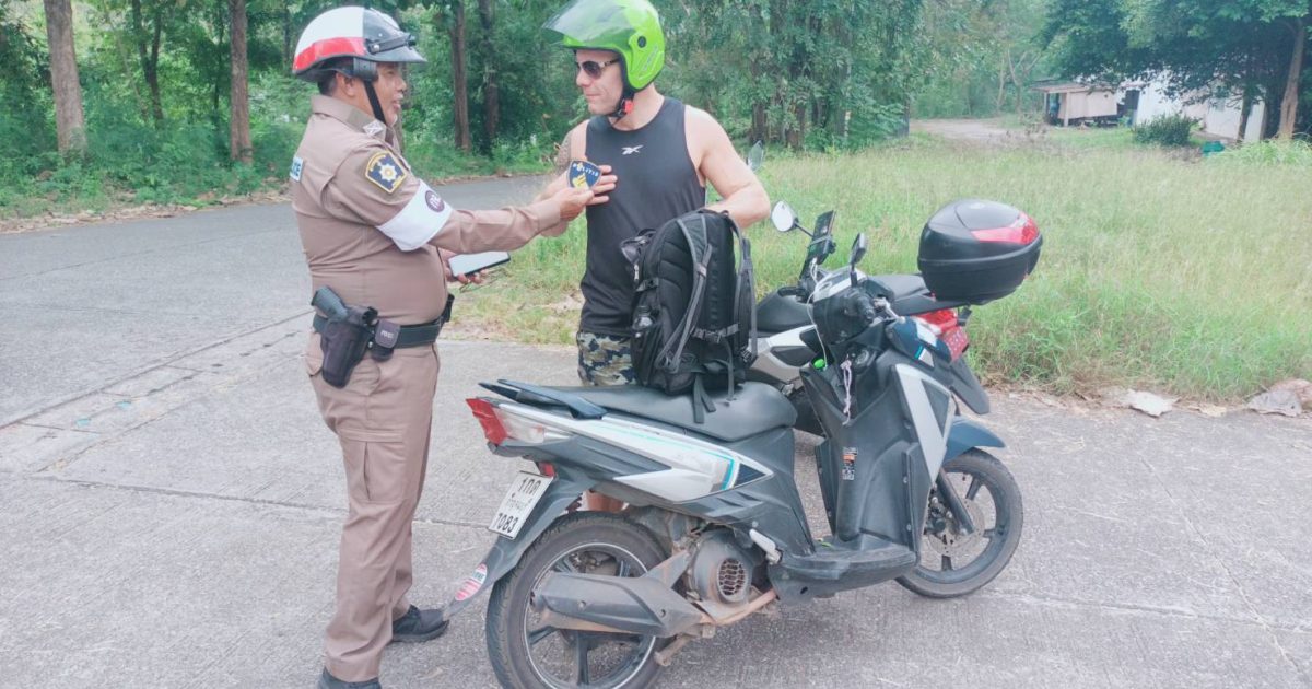 ตำรวจจราจร สภ.ศรีสวัสดิ์ อำนวยความสะดวกจราจร ให้คำแนะนำเส้นทางสถานที่ท่องเที่ยวแก่นักท่องเที่ยวต่างชาติ