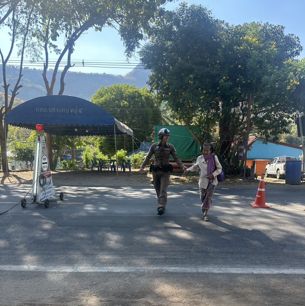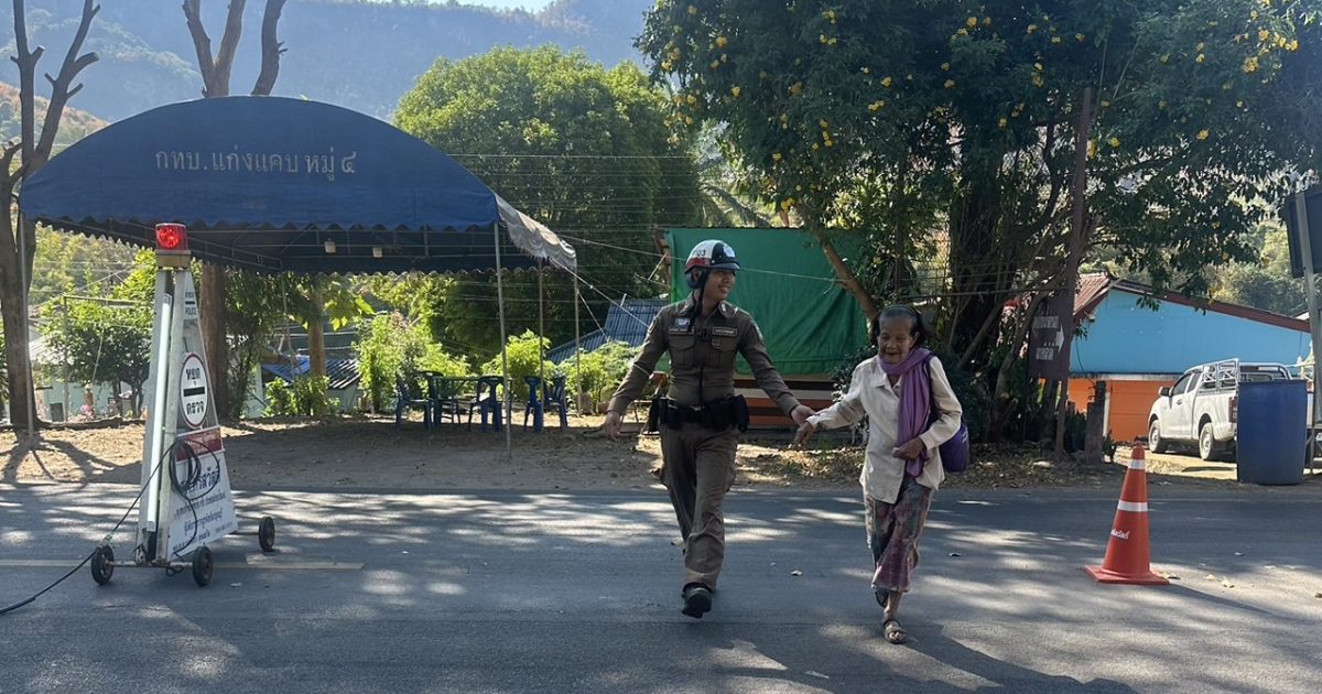 ตำรวจจราจร สภ.ศรีสวัสดิ์ อำนวยความสะดวกจราจร อำนวยความสะดวก นำประชาชนข้ามถนน