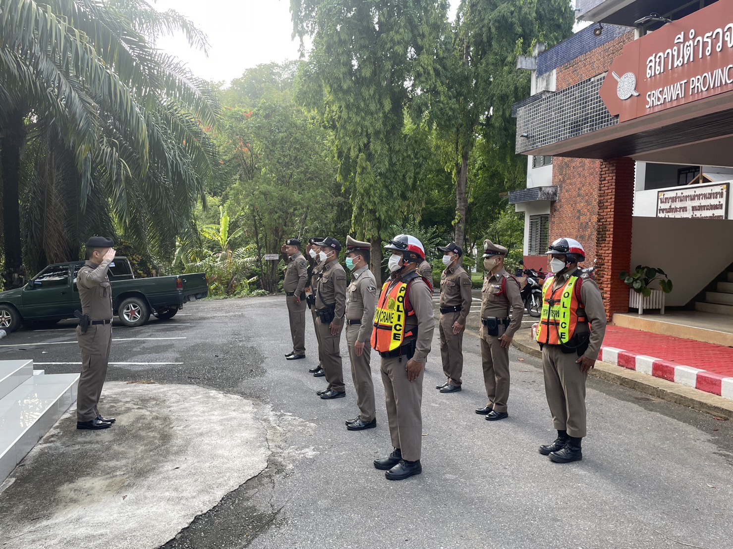 ผกก.สภ.ศรีสวัสดิ์ ชี้แจงการปฏิบัติและอบรมปล่อยแถว สายตรวจก่อนออกปฏิบัติหน้าที่