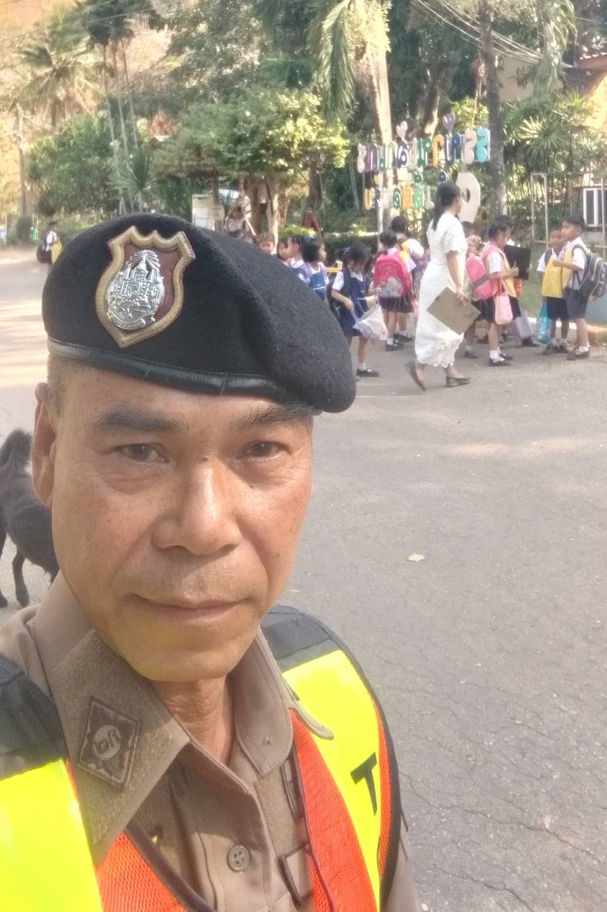 วันที่ 5 ก.พ.2568 🚔 ร.ต.ต.ไพบูลย์ สวัสดิ์ ตำรวจจราจร สภ.ศรีสวัสดิ์ อำนวยความสะดวกจราจร บริเวณสถานศ