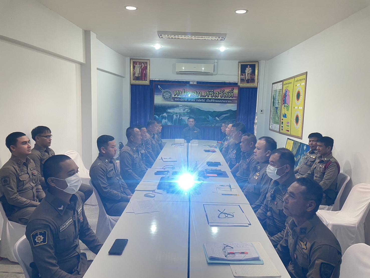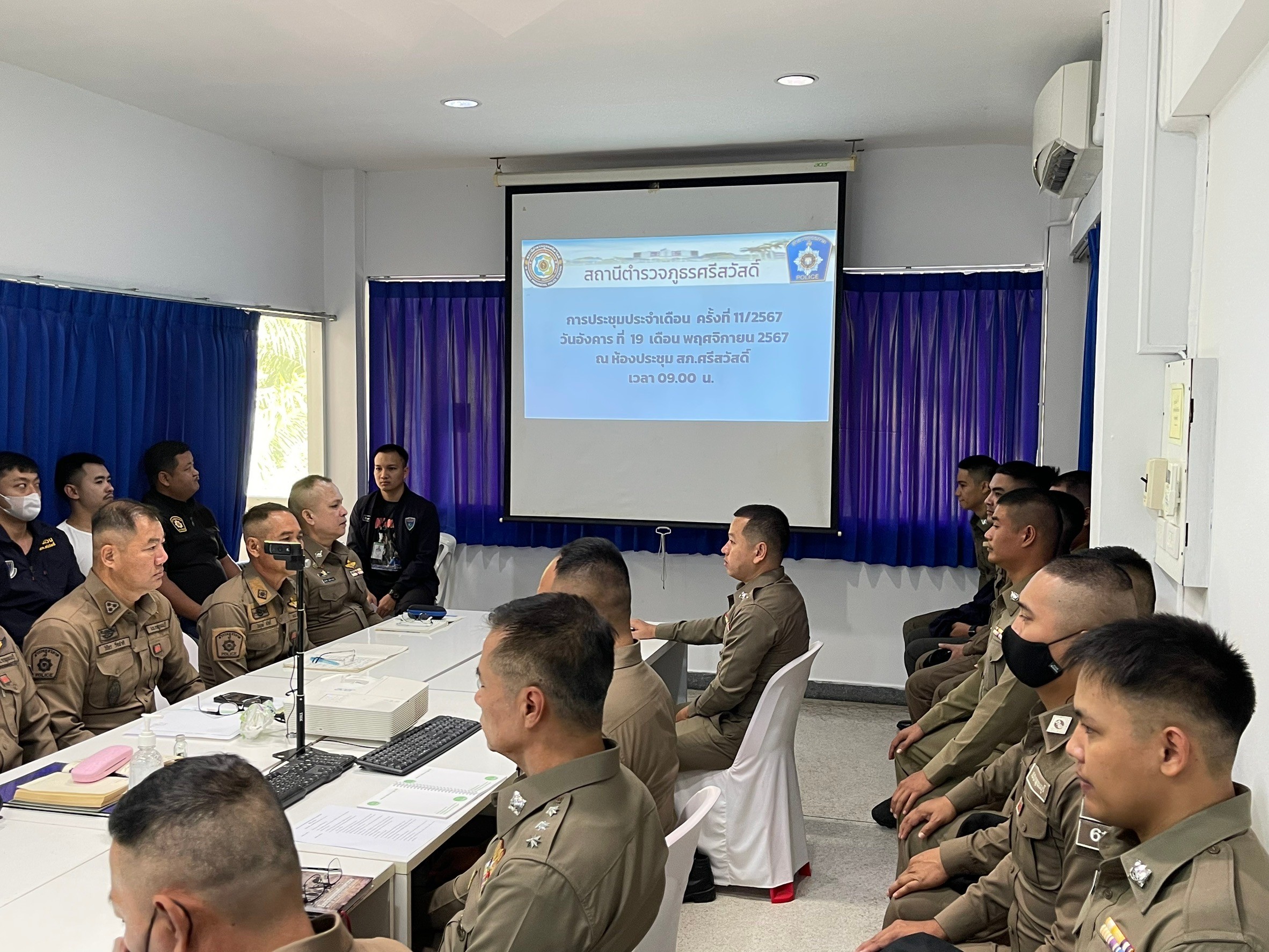 สภ.ศรีสวัสดิ์ “ประชุมประจำเดือน รายงานผลการปฏิบัติงาน รับมอบนโยบายและข้อสั่งการจากผู้บังคับบัญ