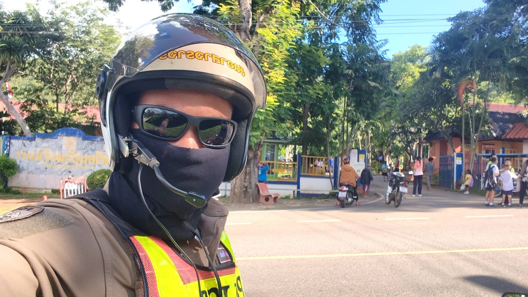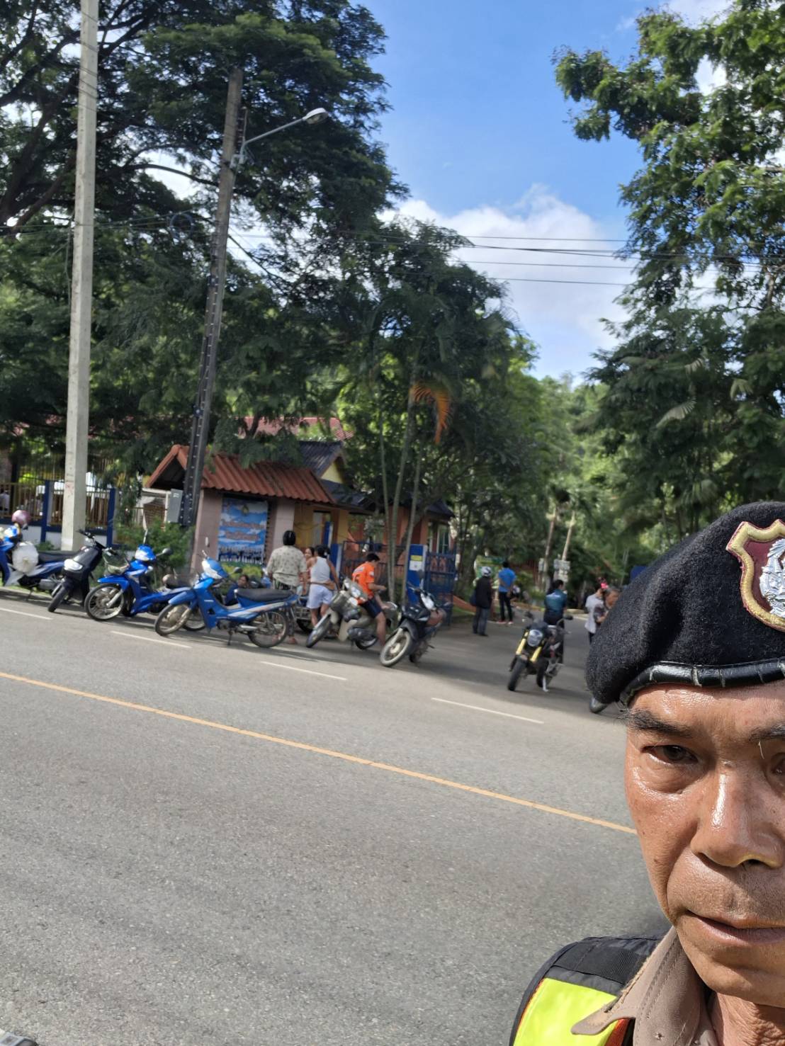 อำนวยความสะดวกจราจร บริเวณหน้าโรงเรียนบ้านเจ้าเณร ( 8 ตุลาคม 2568 ) เวลา 07.09 น.