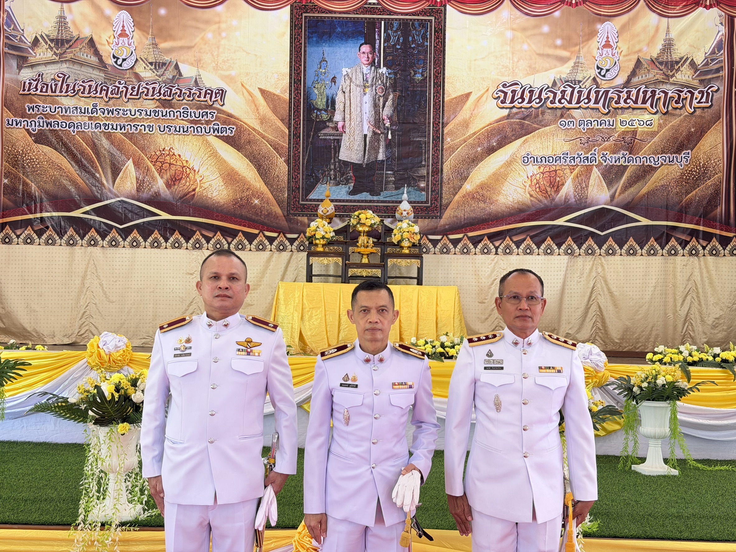 ร่วมพิธีเจริญพระพุทธมนต์ ทําบุญตักบาตรถวายพระราชกุศล วางพวงมาลา เนื่องในวันนวมินทรมหาราช วันที่ 13 ตุลาคม 2568 ณ หอประชุมอำเภอศรีสวัสดิ์ ( 13 ตุลาคม 2568 ) เวลา 07.30 น.