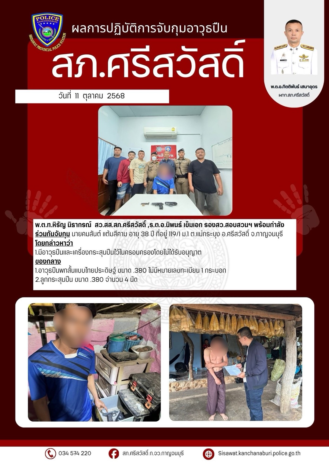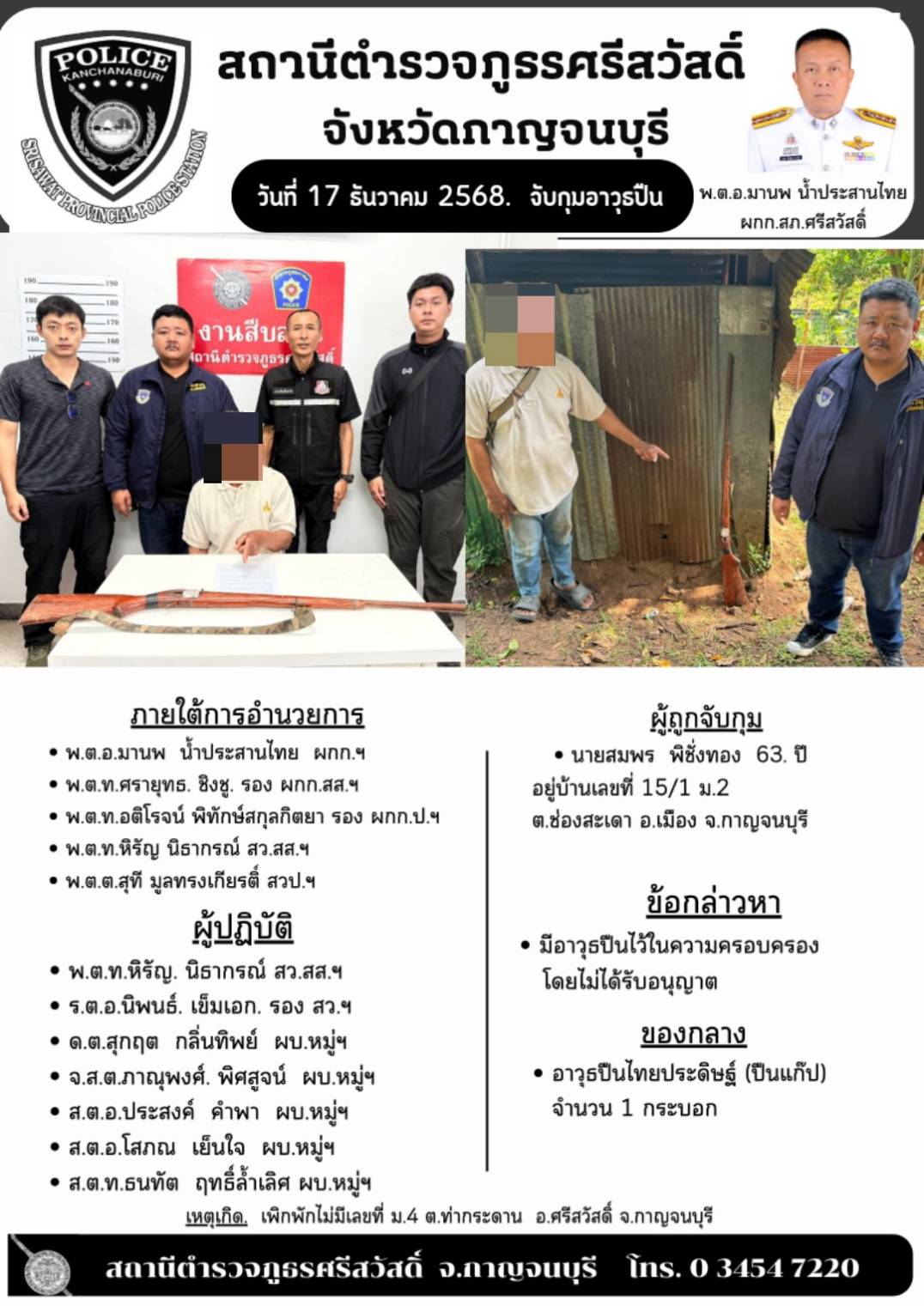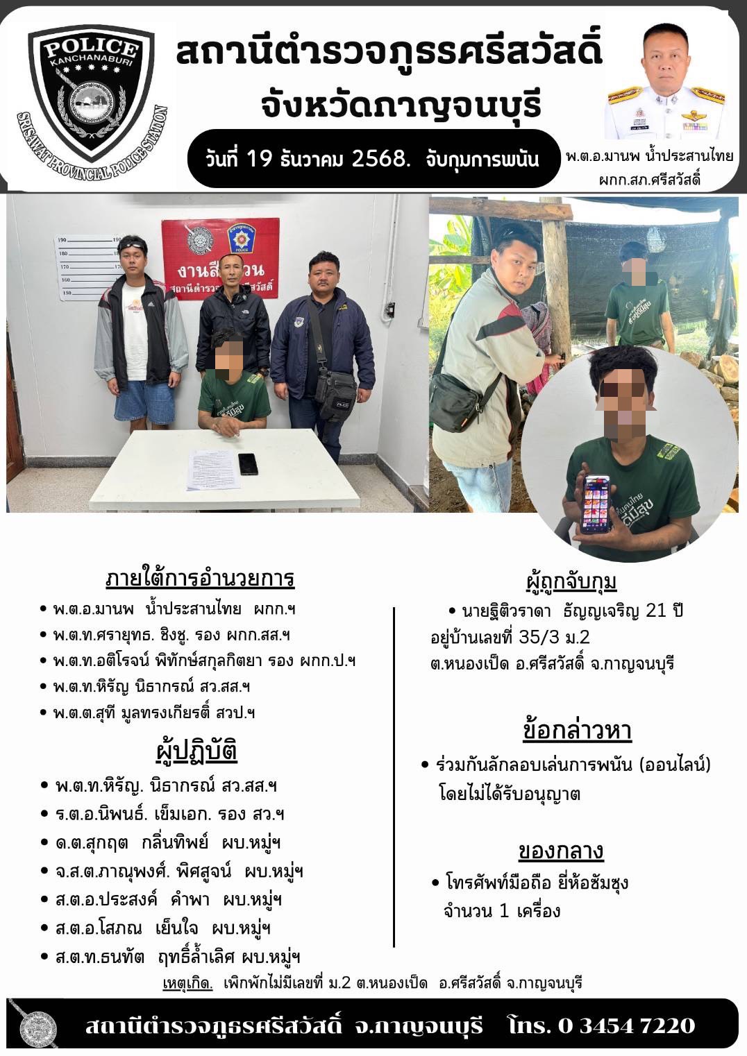 สภ.ศรีสวัสดิ์ ภ.จว.กาญจนบุรี เรียนผู้บังคับบัญชา วันที่ 2 ม.ค.2569 เวลา 14.50น. พ.ต.อ.มานพ น้ำประสาน