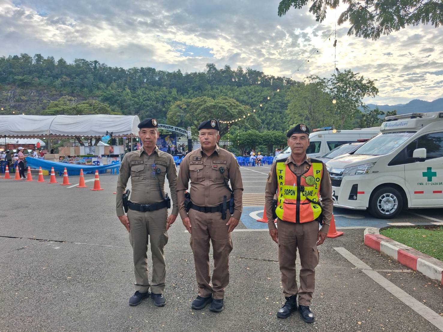 ว.4 ดูแลรักษาความปลอดภัยอำนวยความสะดวกให้กับพี่น้องประชาชนและนักท่องเที่ยวต่างชาติ เทศกาลปีใหม่ สันเขื่อนศรีนครินทร์ ( 2 มกราคม 2569 ) เวลา 10.00 น.