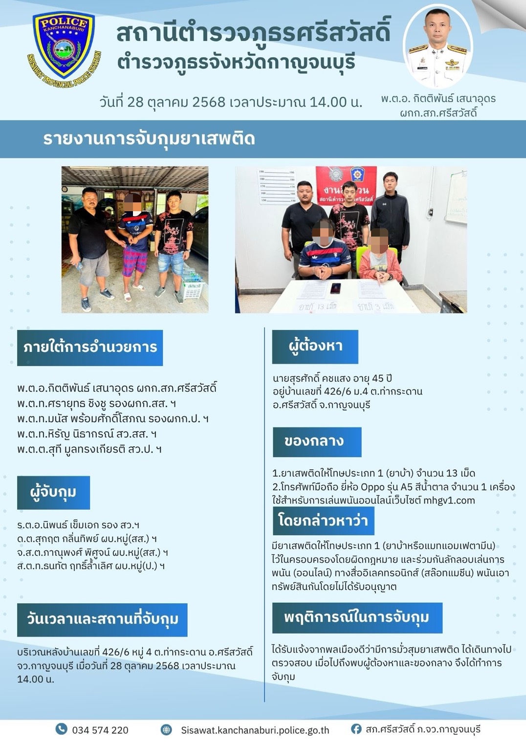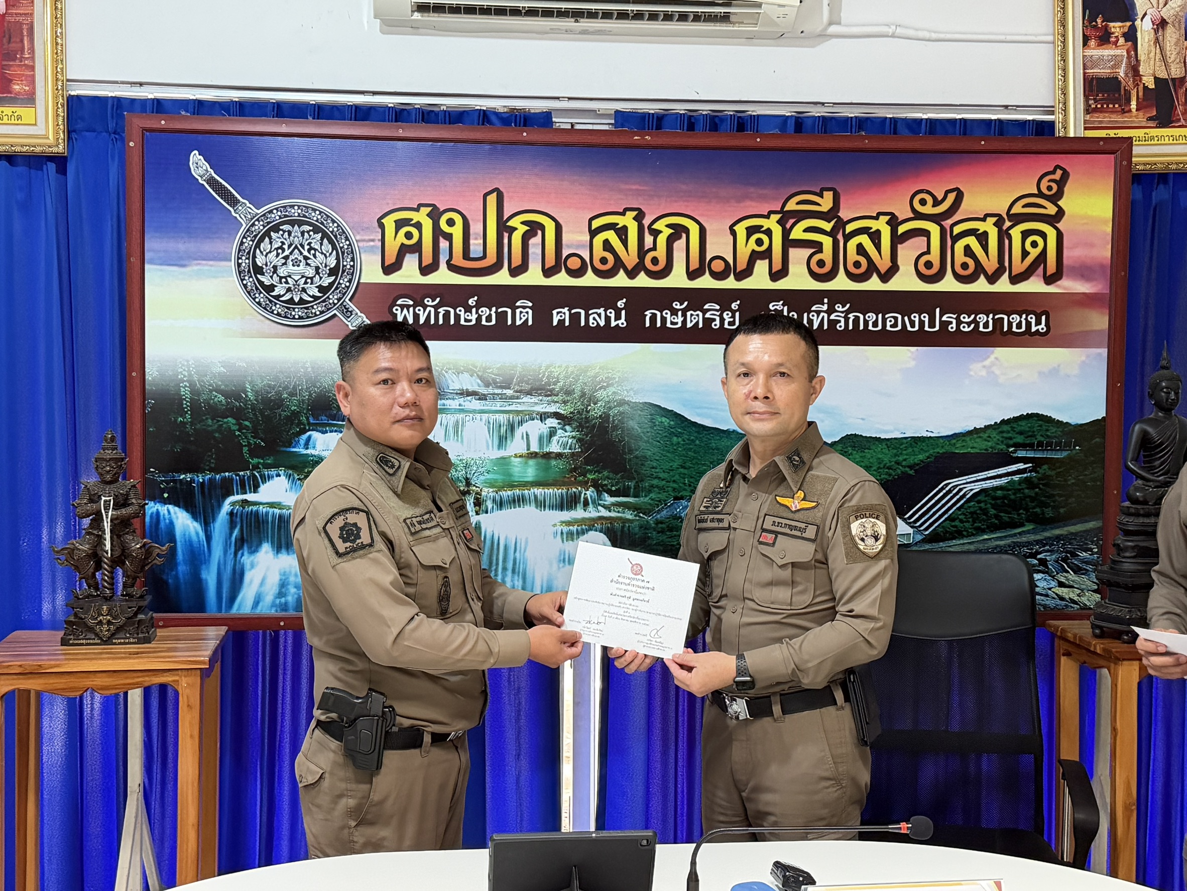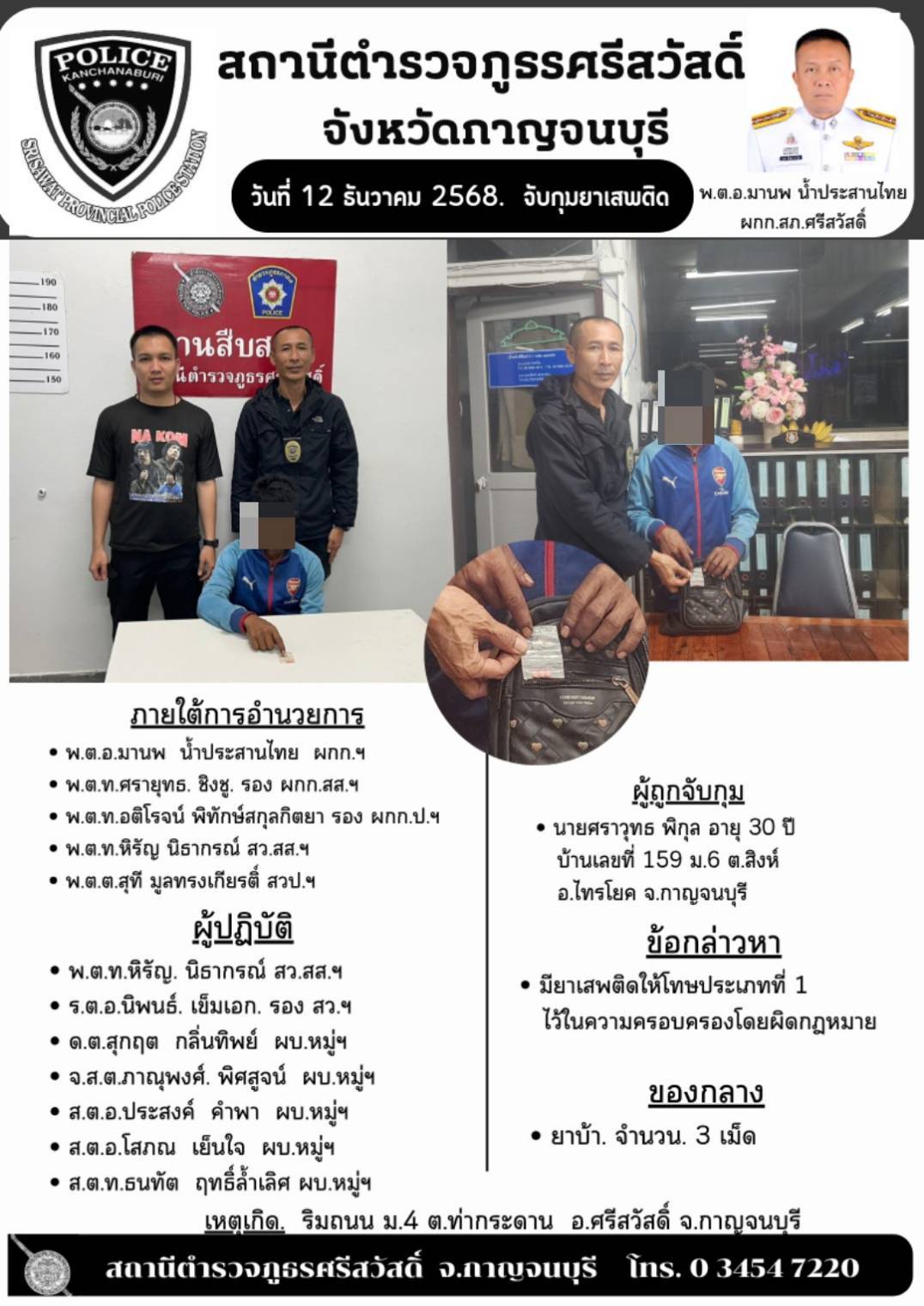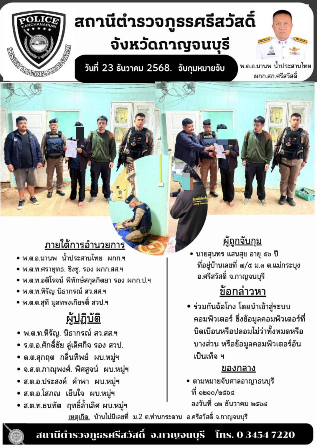 สภ.ศรีสวัสดิ์ เรียน ผู้บังคับบัญชาเพื่อโปรดทราบ วันที่ ๒๓ ธันวาคม ๒๕๖๘ ภายใต้การอำนวยการของ พ.ต.อ.มา