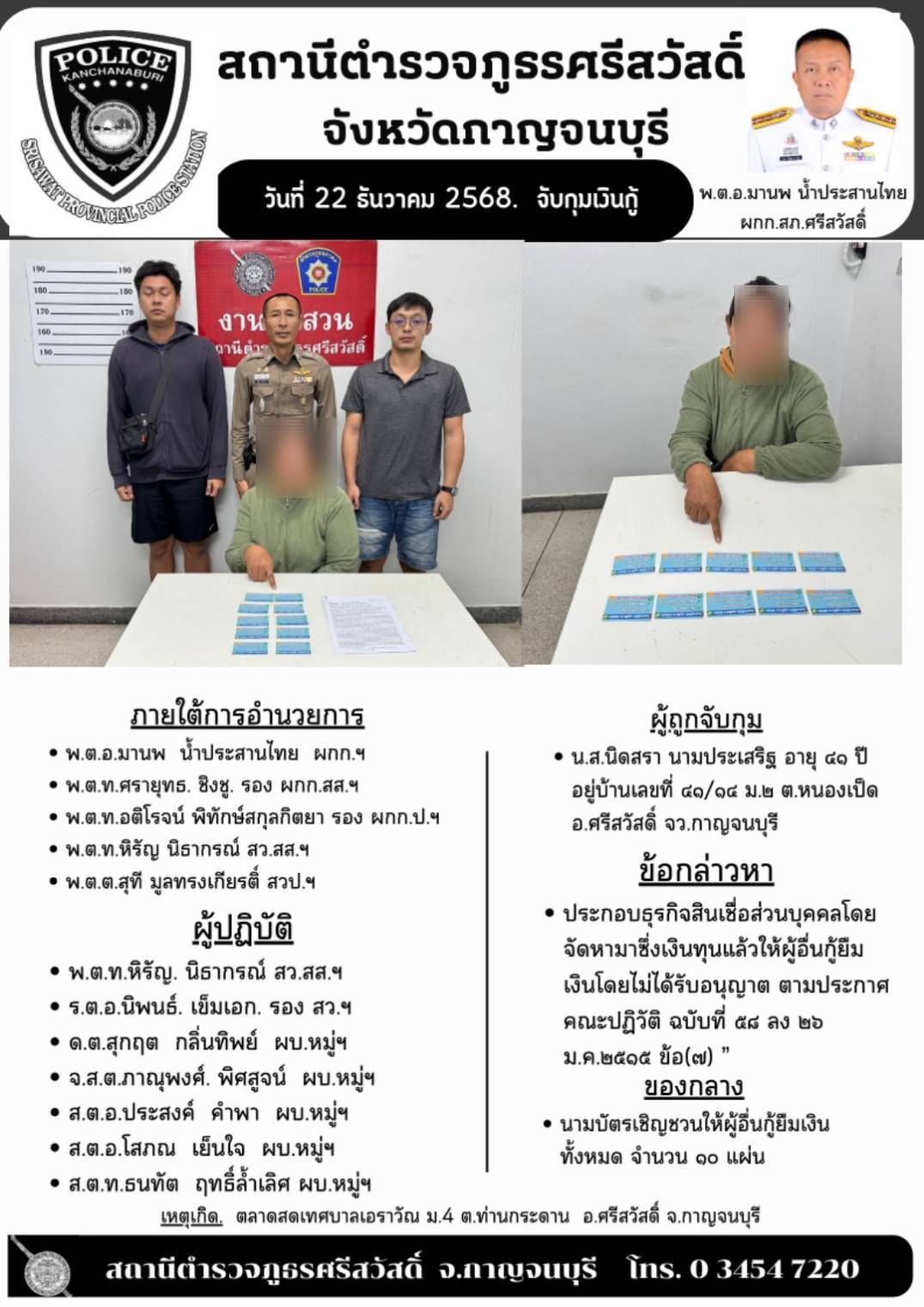 ผลการปฏิบัติการจับกุมเงินกู้ ( 22 ธันวาคม 2568 ) เวลาประมาณ 07.40 น.
