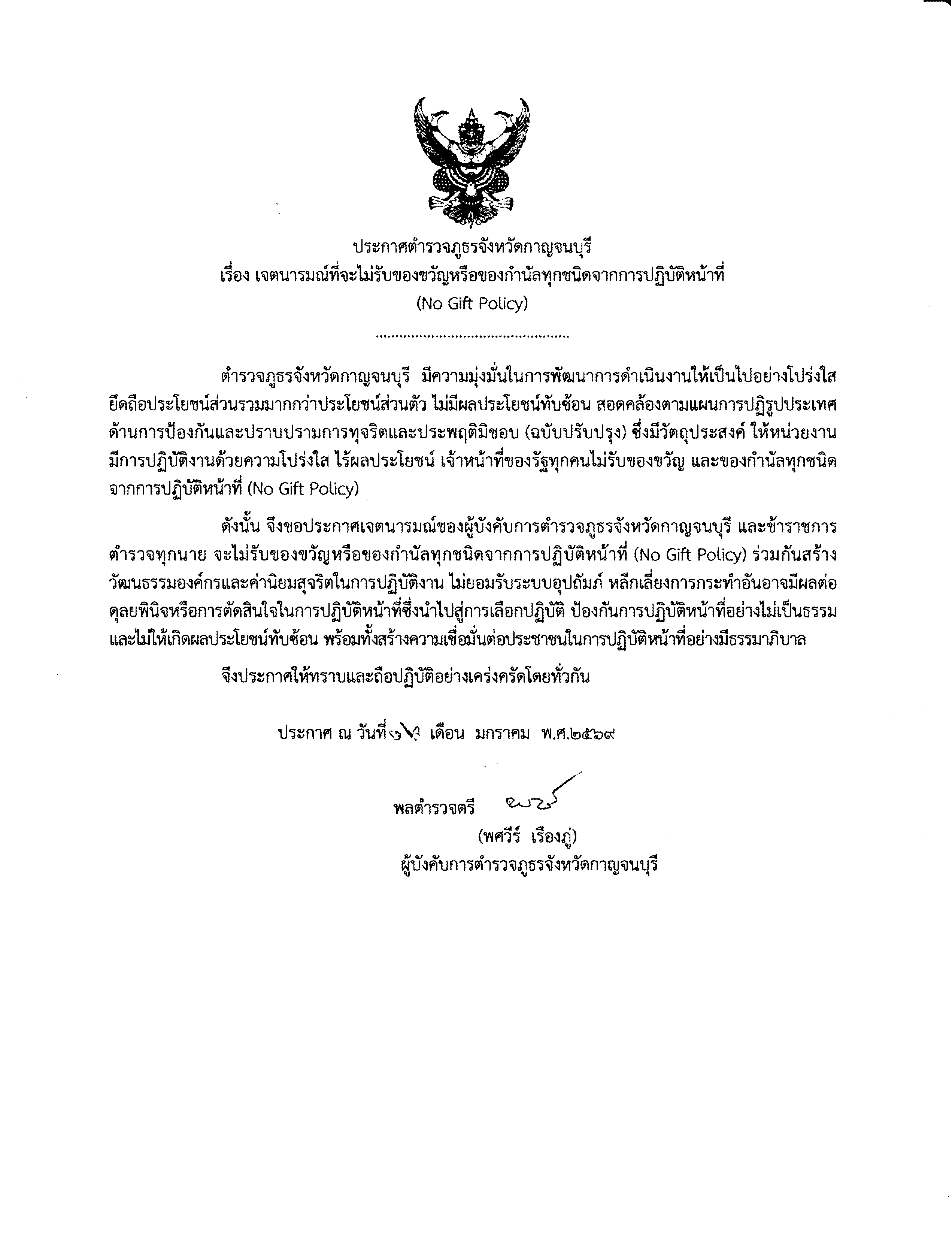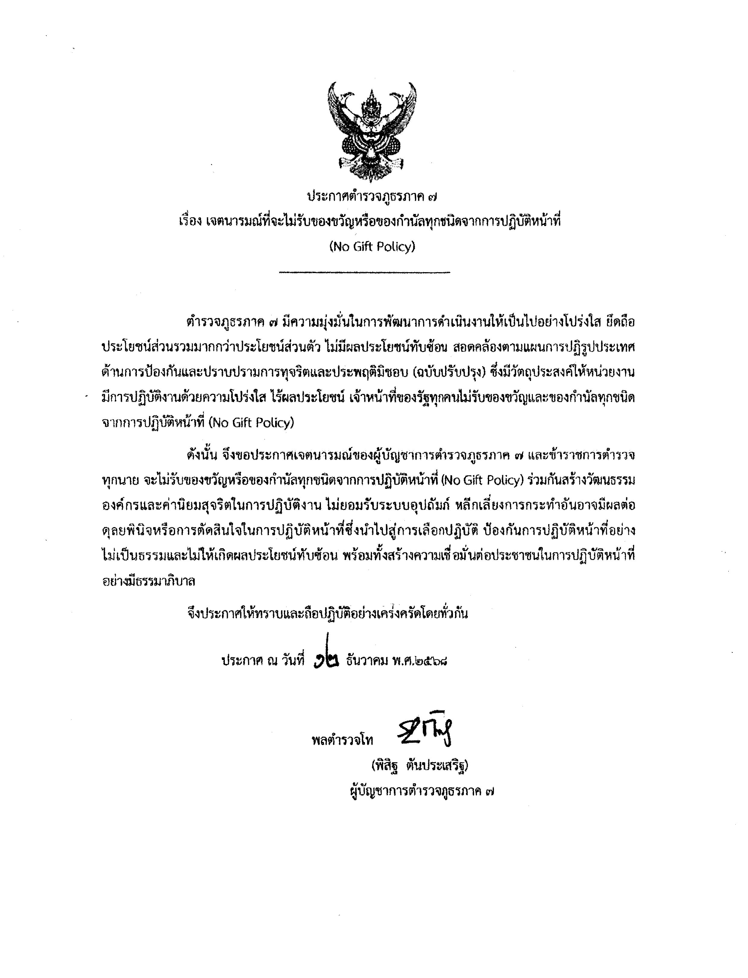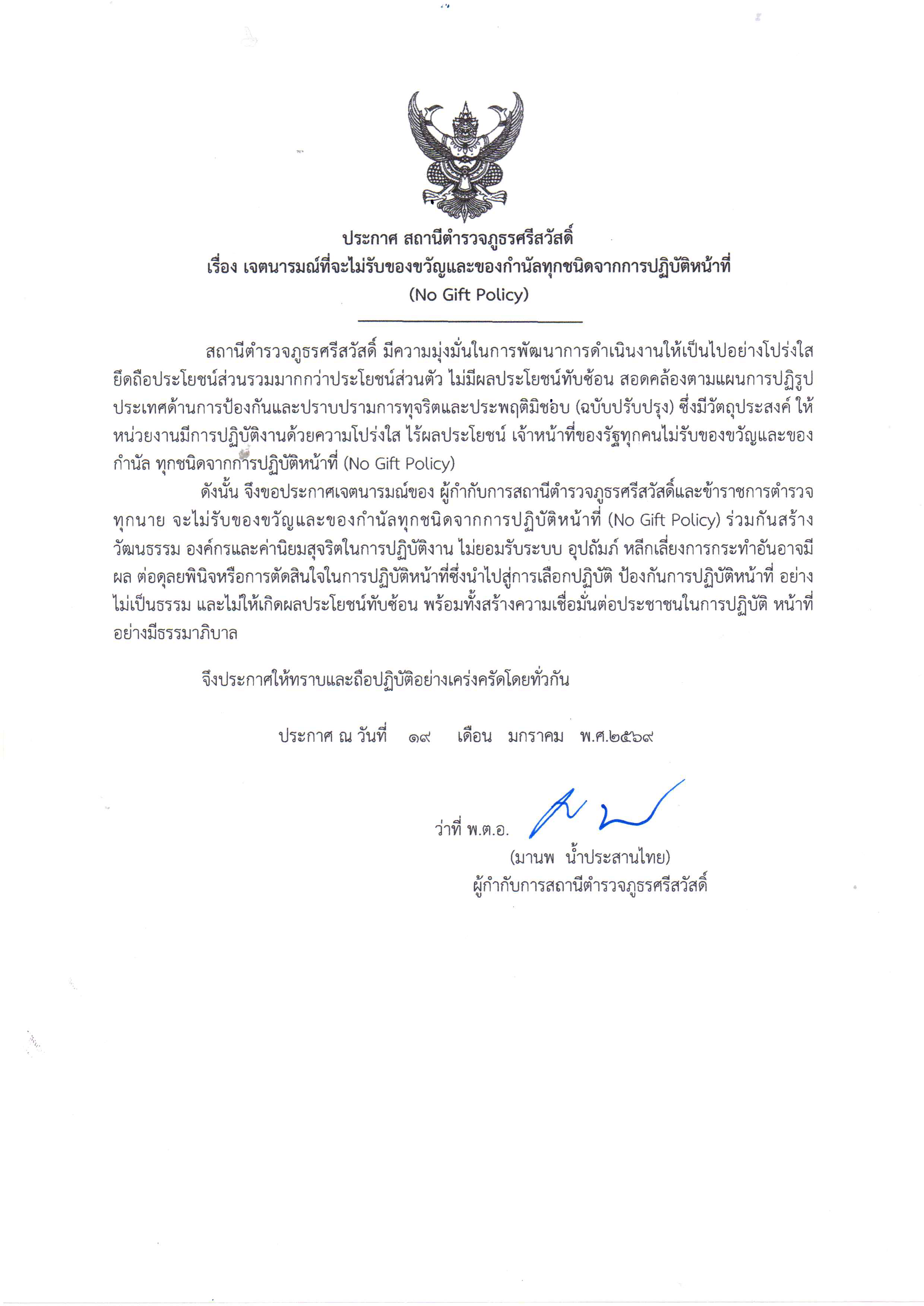 นโยบาย “No Gift Policy ไม่รับ – ไม่ให้” ประกาศเจตนารมณ์ (ภาษาไทย) ประกาศเจตนารมณ์ (ภาษาอังกฤษ