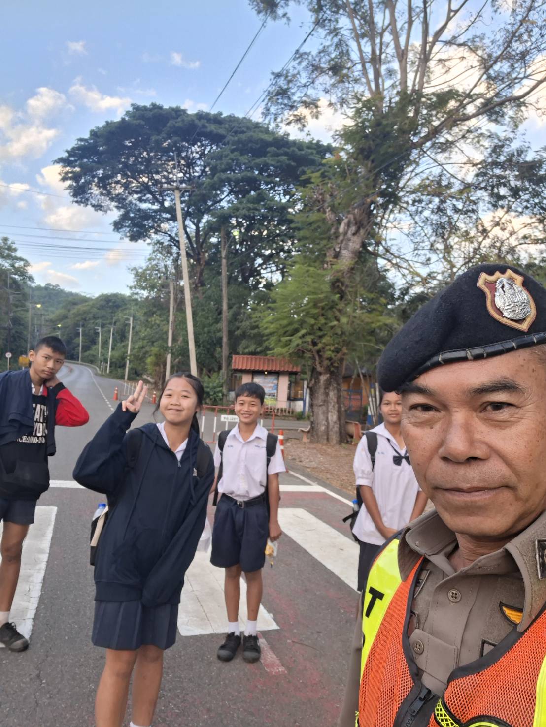 อำนวยความสะดวกจราจร บริเวณหน้าโรงเรียนบ้านเจ้าเณร ( 15 ธันวาคม 2568 ) เวลา 07.04 น.