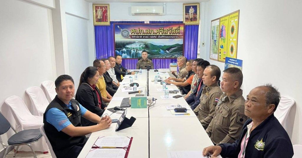พ.ต.อ.กิตติพันธ์ เสนาอุดร ผกก.สภ.ศรีสวัสดิ์, พ.ต.ท.มนัส พร้อมศักดิ์โสภณ รอง ผกก.ป.สภ.ศรีสวัสดิ์ พร้อมเจ้าหน้าที่ส่วนที่เกี่ยวข้อง