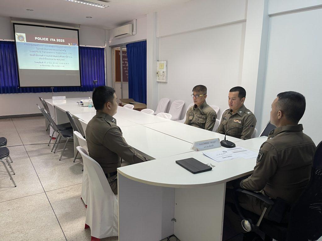 พ.ต.อ.กิตติพันธ์ เสนาอุดร ผกก.สภ.ศรีสวัสดิ์ เมื่อวันที่ 18 ก.พ.2568 เวลา 13.30 น. พ.ต.อ.กิตติพันธ์ เสนาอุดร ผกก.สภ.ศรีสวัสดิ์ เป็นประธานประชุมชี้แจงกรอบประเด็น ที่ต้องปรับปรุงและพัฒนา ในการประเมินคุณธรรมและความโปร่งใสในการดําเนินงานของหน่วยงานภาครัฐ(Integrity & Transparency Assessment : ITA ) ของสถานีตํารวจ (กิจกรรม Police ITA 2025) โดยได้กำหนดผู้รับผิดชอบ (มีหัวหน้าควบคุมการปฏิบัติ และกำหนดเจ้าหน้าที่ผู้ปฏิบัติ) ในแต่ละกิจกรรม