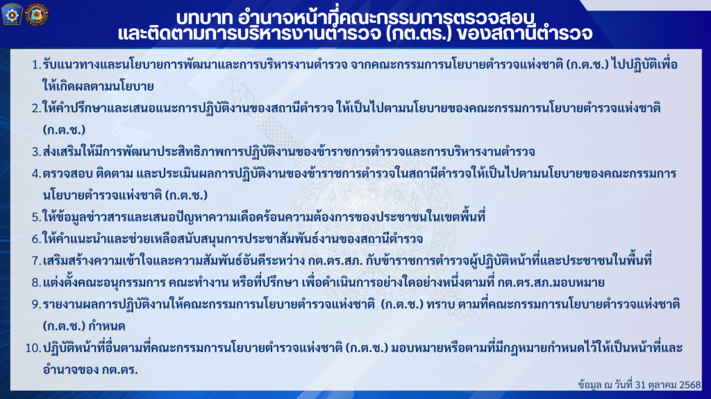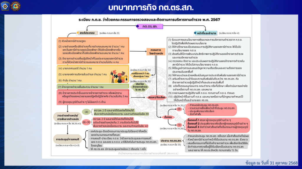 ที่มา: คู่มือการดำเนินการตำมระเบียบ ก.ต.ช. ว่าด้วยคณะกรรมการตรวจสอบและติดตามการบริหารงานตำรวจ พ.ศ. 2567