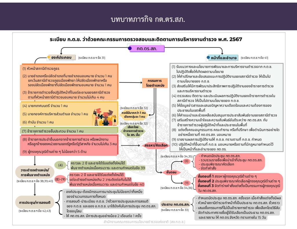 ที่มา: คู่มือการดำเนินการตำมระเบียบ ก.ต.ช. ว่าด้วยคณะกรรมการตรวจสอบและติดตามการบริหารงานตำรวจ พ.ศ. 2567